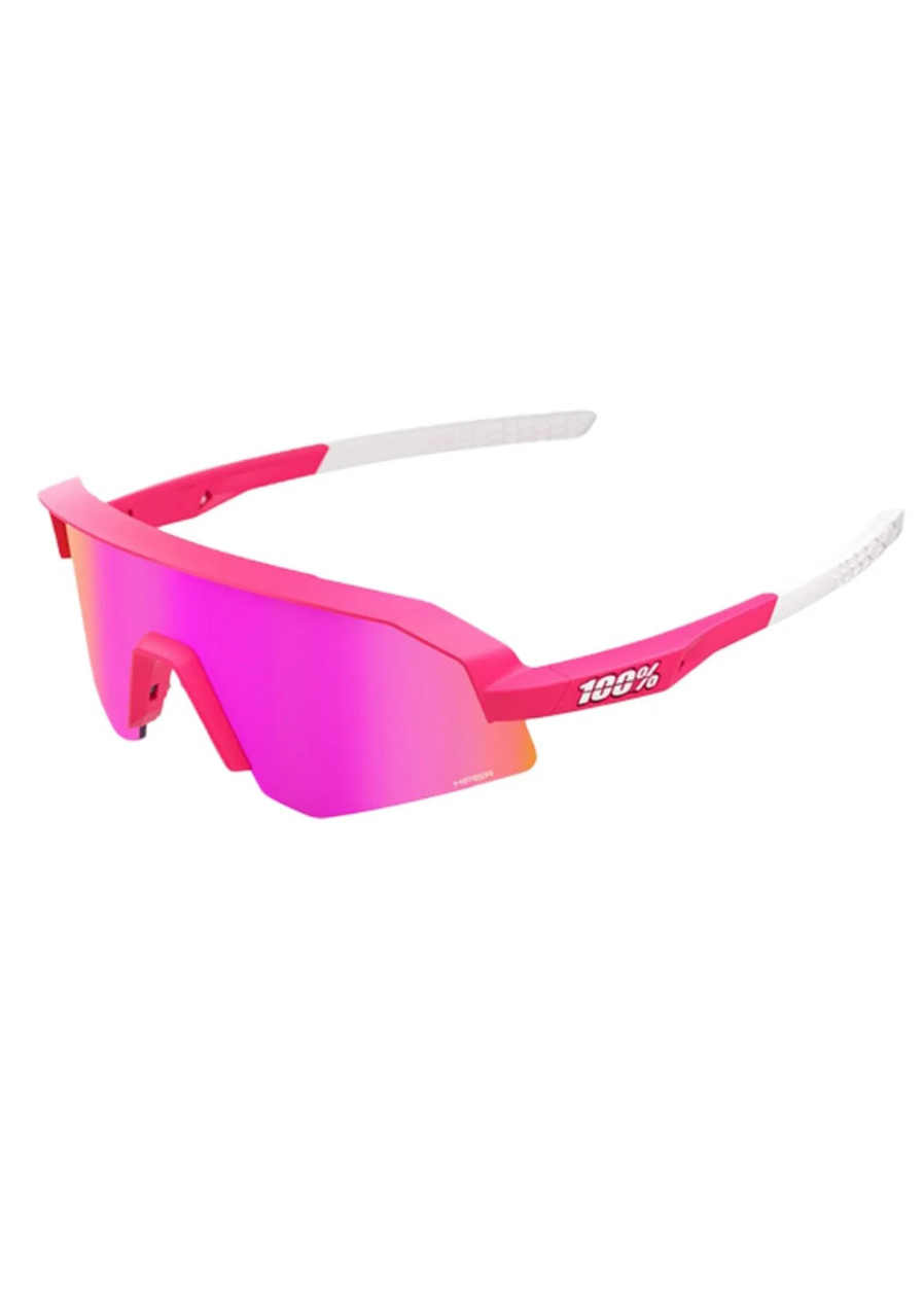 Dětské sluneční brýle 100% Slendale XS v živé barevné kombinaci Pitaya s čočkami HiPER Vital Pink Mirror jsou navrženy speciálně pro aktivní děti, které potřebují spolehlivou ochranu očí a zároveň chtějí vypadat stylově. Brýle jsou ideální pro různé venkovní aktivity, od cyklistiky a běhu až po hraní venku a každodenní nošení.