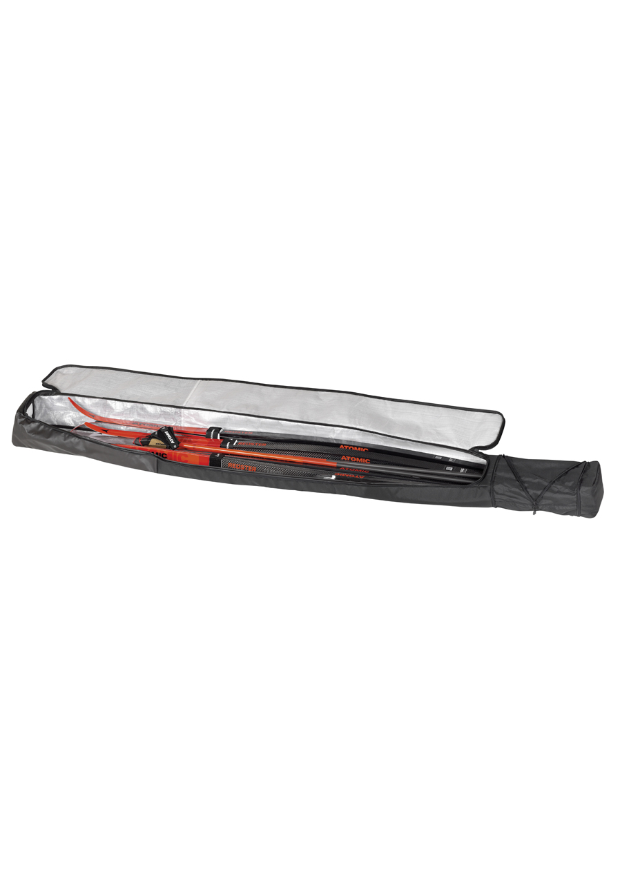 Atomic Nordic Ski Bag 3 Pairs je kvalitně polstrovaný vak určený pro pohodlné přenášení tří párů běžeckých lyží a holí. Otvor na zip umožňuje snadný přístup do hlavní přihrádky, která má také větrací okénko pro odvádění vlhkosti. Na vnější straně jsou kompresní popruhy s polstrovanými držadly pro větší pohodlí a další zip pro přizpůsobení délky vaku podle lyží.