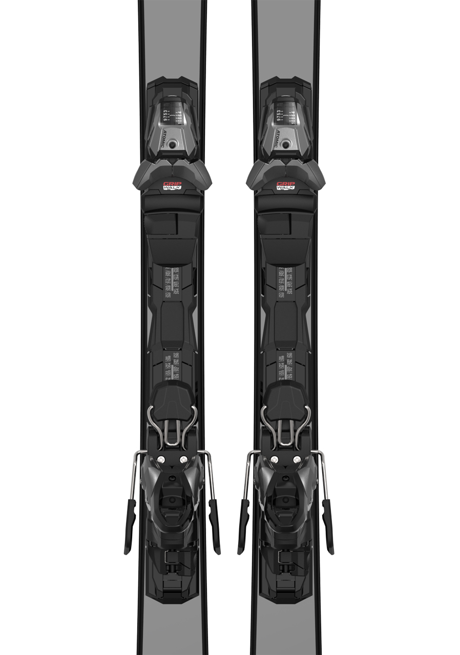 Součástí setu je vázání Atomic M 10 GW, které je lehké, spolehlivé a plně kompatibilní se sjezdovými botami se systémem Grip Walk i klasickými podrážkami. Poskytuje bezpečný přenos síly a snadné nastavení.