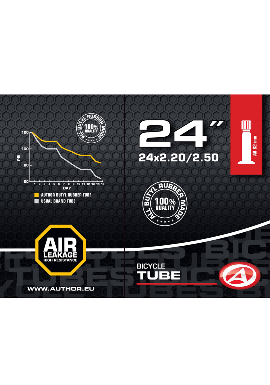 Duše Author AT-CMP-24 je spolehlivá cyklistická duše určená pro kola s 24palcovými plášti. Skvěle se hodí pro dětská a juniorská kola i horská kola menších velikostí. Vyrobena z kvalitního butylového kaučuku, který zajišťuje dlouhou životnost, výbornou vzduchotěsnost a odolnost vůči propíchnutí.