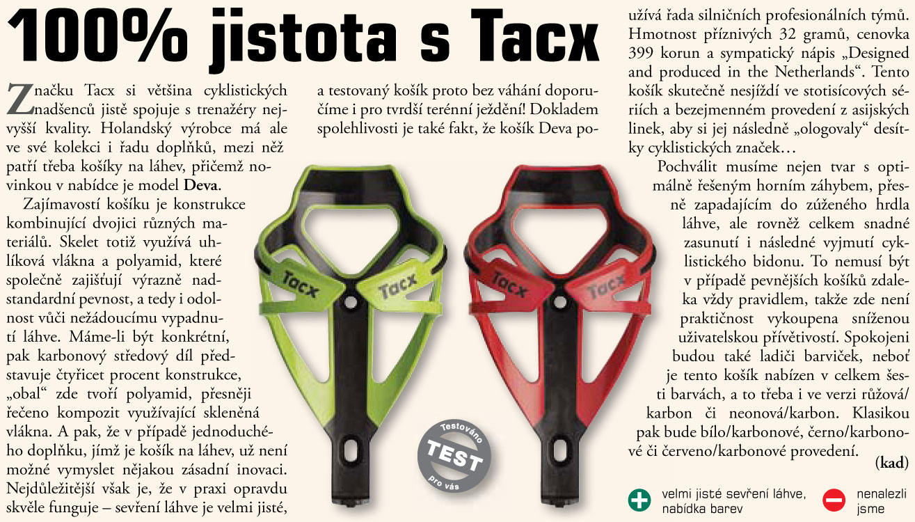 Lehký a pevný košík na lahev s výborným držením i v náročném terénu. Kompozitová konstrukce s karbonovými výztužemi zajišťuje vysokou tuhost a odolnost proti vibracím. Design Deva je oblíbený mezi profesionály pro svou spolehlivost i při agresivní jízdě. Barevná kombinace: zelená / karbon.