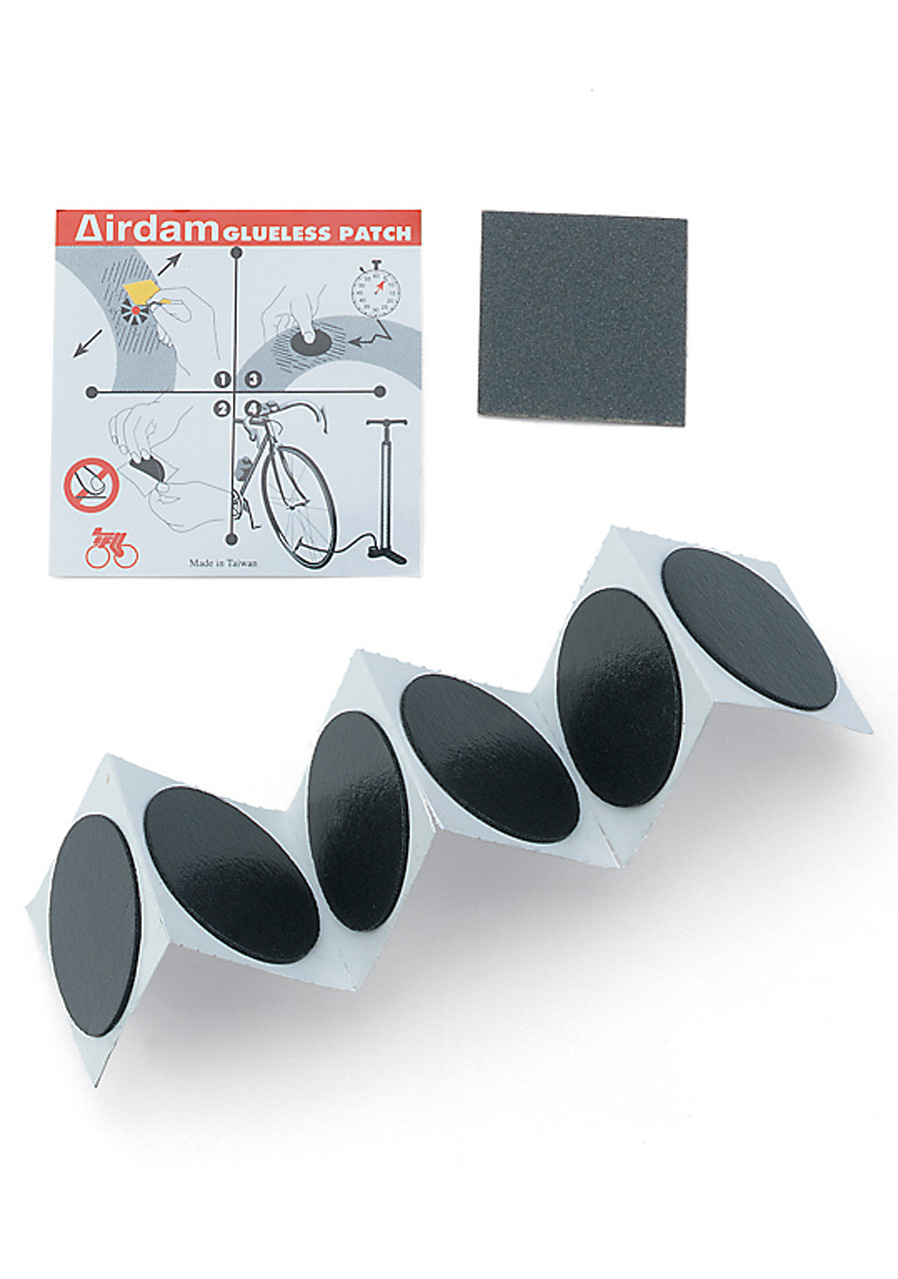 Specifikace: Obsah: 6 samolepicích záplat + zdrsňovač Použití: Rychlá oprava defektu bez lepidla Vhodné pro: Všechny typy veloduší Balení: Kompaktní rozměry – ideální do brašny nebo kapsy Výhoda: Rychlé použití i v terénu