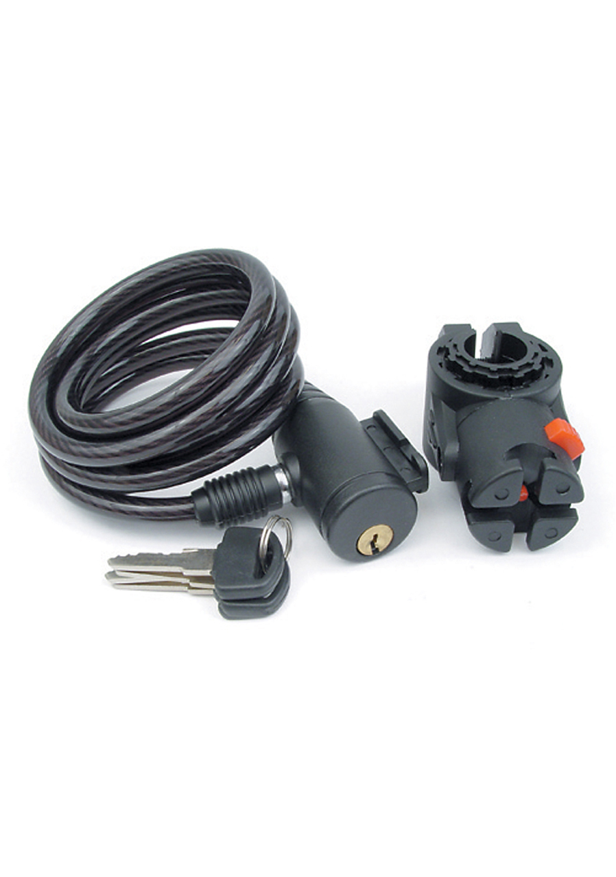 Lankový zámek o průměru 8 mm a prodloužené délce 150 cm nabízí větší flexibilitu při zabezpečení kola, koloběžky nebo kočárku. Černé ocelové lanko s plastovým pláštěm chrání rám před poškozením. Součástí zámku jsou dva klíče a držák pro upevnění na rám kola.