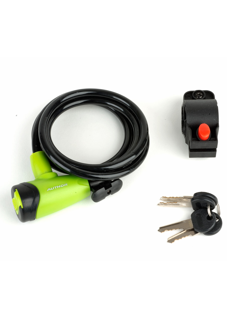 Bezpečnostní spirálový zámek Author ASL-41 v zeleno-černé kombinaci je ideální volbou pro každodenní zajištění kola, koloběžky či kočárku. Díky ocelovému lanku potaženému plastem je zámek odolný vůči proříznutí i povětrnostním vlivům. Součástí je univerzální držák pro snadnou přepravu na rámu kola. Kompaktní rozměry a nízká hmotnost z něj činí praktický doplněk pro městské použití.