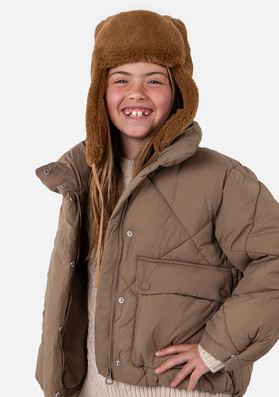 Čepice Barts Lucernia Bomber Kids v teplé hnědé barvě kombinuje hravý dětský design s praktickou ochranou proti chladu. Měkký a pružný materiál pohodlně obepíná hlavičku a zajišťuje teplo i během zimních her venku. Bomber střih a univerzální hnědá barva dělají čepici snadno kombinovatelnou s dětským zimním oblečením.