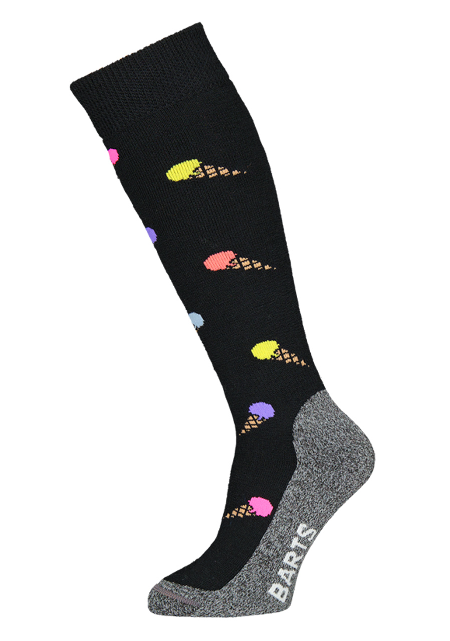 Parametry: Materiál: 75 % bavlna, 22 % polyamid, 3 % elastan Střih: vysoký – podkolenky Vlastnosti: hřejivé, měkké, prodyšné, s elastickým lemem Design: Ice Cream (motiv zmrzlin) Barva: Black (černá) Vhodné pro: lyžování, zimní sporty, každodenní nošení