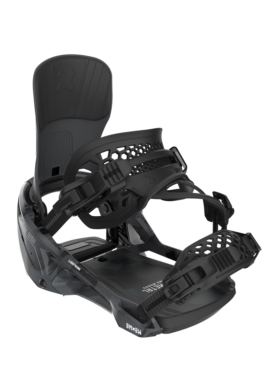 Snowboardové vázání Bent Metal Lightning SUPERMATIC Black přináší nový standard v rychlosti a jednoduchosti nástupu. Díky inovativnímu systému Auto-Entry Heel Gate stačí pouze nastoupit do vázání a patka se automaticky uzamkne – stejně rychle a spolehlivě jako u step-in systémů, ale s plnou kontrolou klasického strapového vázání. Pro maximální jistotu a univerzálnost zůstávají k dispozici i klasické pásky. Vázání je lehké, velmi pevné a poskytuje přesný přenos síly pro all-mountain i freestyle jízdu.
