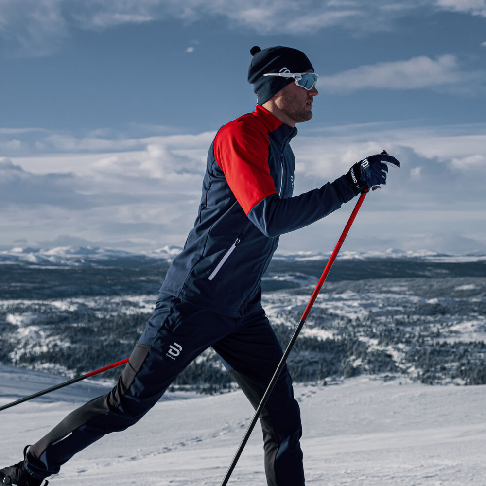 - bunda na běžky z měkkého softshellu se strečovým panelem vzadu pro dobrou pohyblivost a ventilaci
