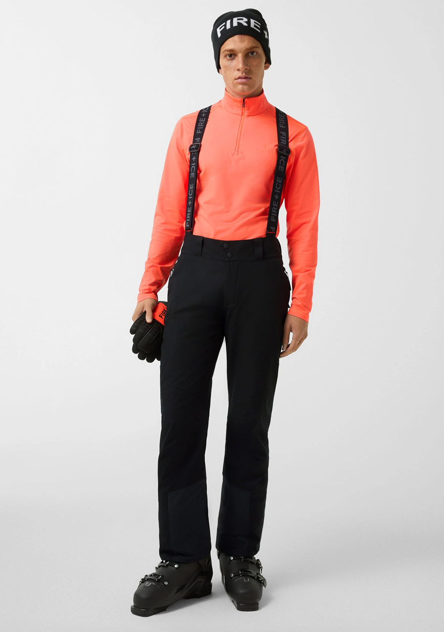 Pánské lyžařské kalhoty Bogner Fire + Ice Scott3-T jsou navrženy pro lyžaře, kteří hledají dokonalou rovnováhu mezi výkonem, funkčností a stylem. Ergonomický střih Regular Fit s rovnými nohavicemi zajišťuje volnost pohybu a maximální pohodlí při jízdě na sjezdovce i mimo ni. Technický svrchní materiál s vodním sloupcem 10 000 mm a prodyšností 15 000 g/m²/24 h chrání před vlhkostí i větrem, zatímco lehké polstrování udržuje optimální tepelný komfort. Kalhoty jsou vybaveny odnímatelnými šlemi, nastavitelným pasem a vnitřními sněhovými návleky, které zaručují spolehlivou ochranu před sněhem. Design doplňuje reflexní logo FIRE+ICE a promyšlené detaily, jako jsou tvarované švy, odolné konce nohavic a praktické kapsy na zip. Díky trvanlivé vodoodpudivé úpravě (DWR, bez PFAS) jsou Scott3-T ideálním společníkem pro dlouhé dny na svahu v proměnlivém horském počasí.