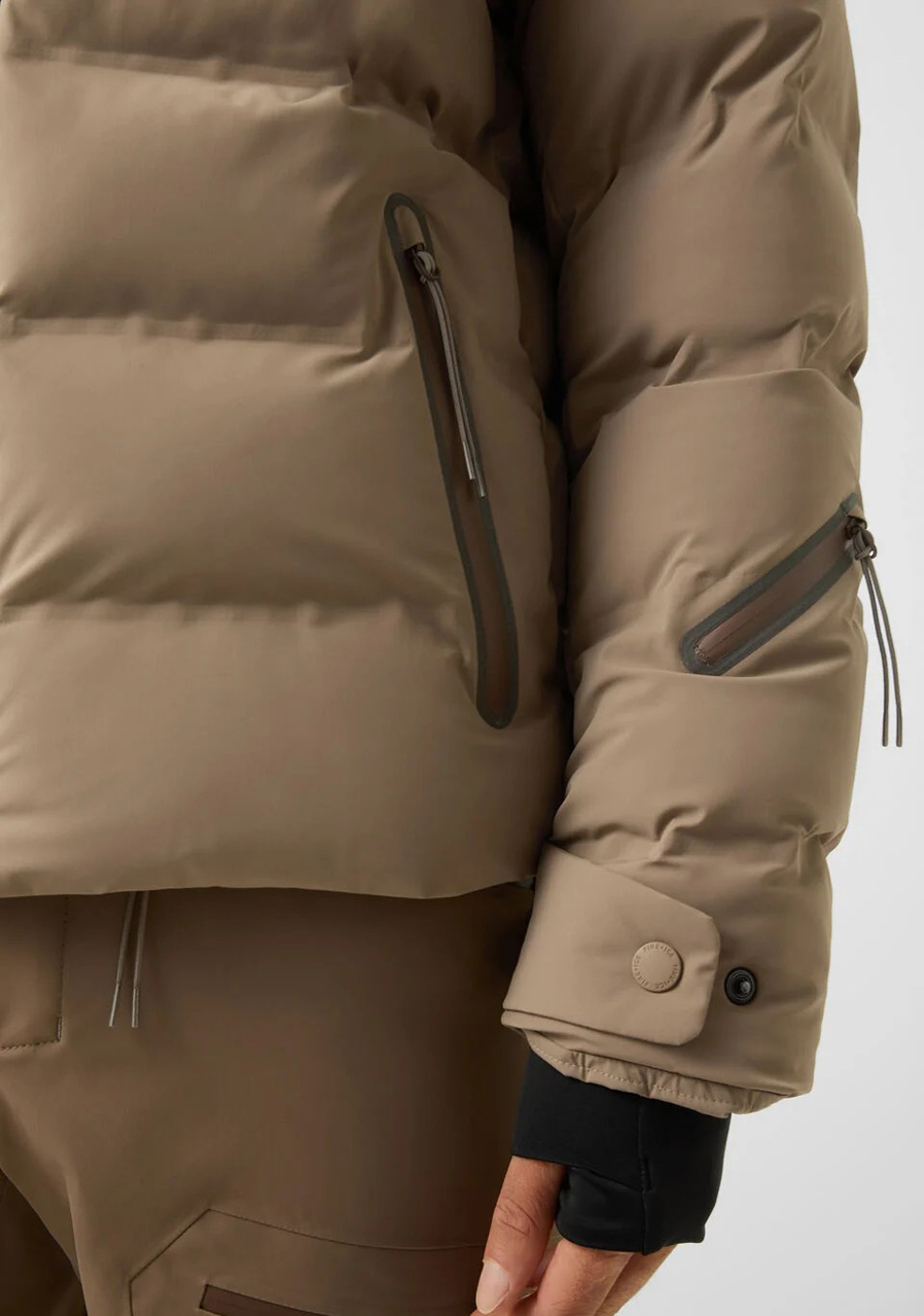 Bunda je vybavena všemi detaily, které zkušený lyžař ocení: odepínací kapucí, vnitřní sněhovou zábranou, nastavitelným lemem, manžetami s poutkem na palec a praktickými kapsami na skipas, zip a drobnosti. Prošívaný design s kontrastní podšívkou a výraznými prvky FIRE+ICE dodává bundě moderní, sportovně-elegantní charakter.