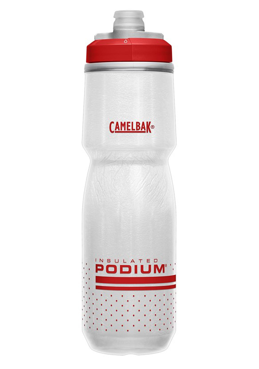 Izolované lahve CamelBak Podium Chill udrží teplotu nápoje 2x déle ve srovnání s normální lahví. Jsou vyrobeny z BPA, BPS a BPF-free polypropylenu s technologií Hydroguard, která zajišťuje věrnou chuť nápoje bez plastové pachuti. Díky patentovanému samouzavíracímu náustku Jet Valve voda z lahve nekape. Navíc je vybavena úplným otočným uzávěrem pro přepravu plných lahví. Víčko s náustkem se snadno rozebere a vyčistí. Díky dokonalému tvaru se lahev Podium Chill na kole dobře drží, snadno se mačká a nikdy ji neztratíte z košíku.