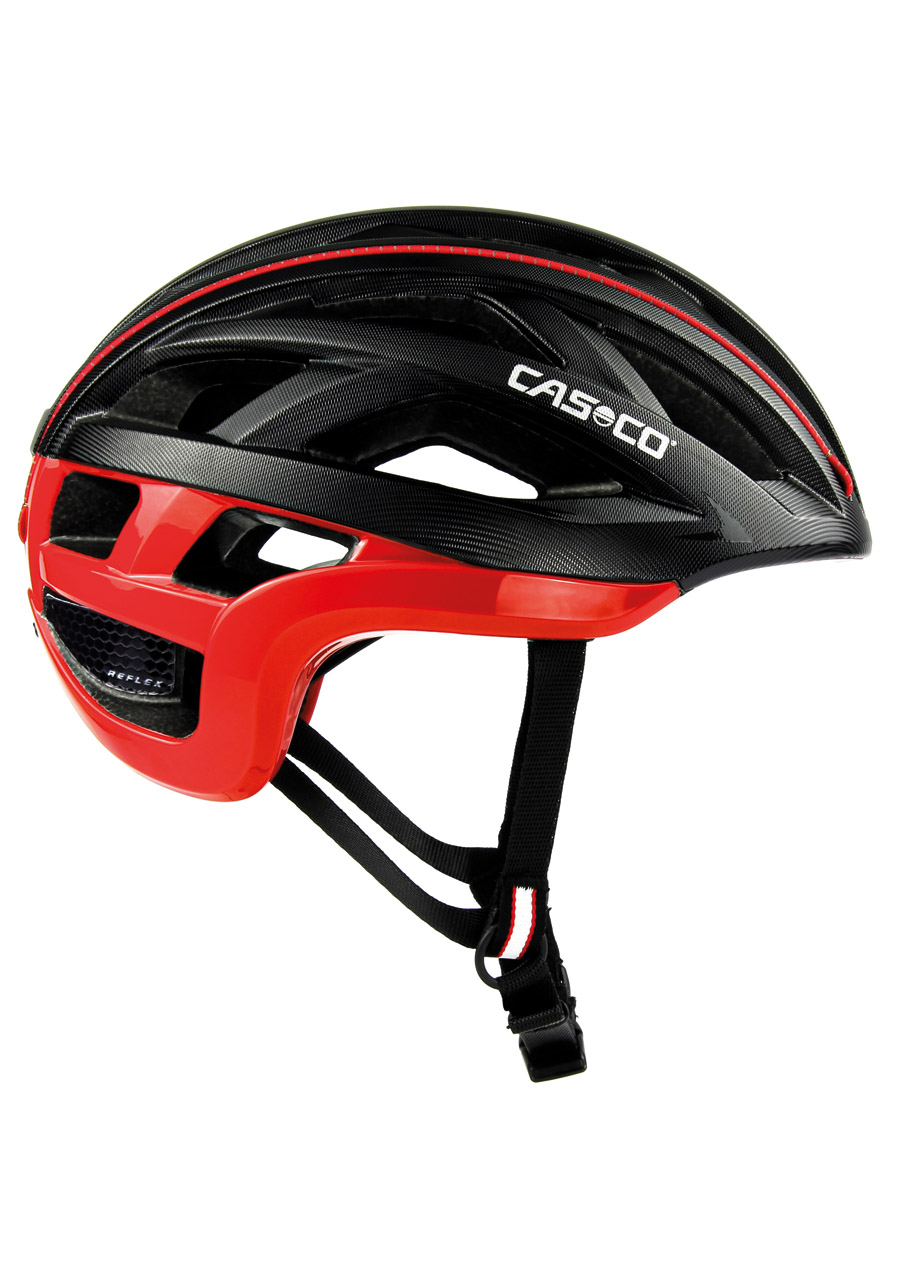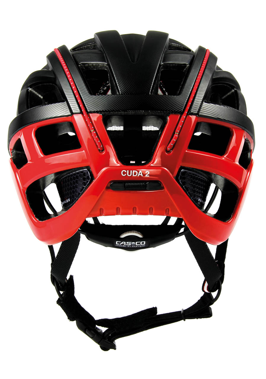 Cyklistická helma Casco Cuda 2 Strada v atraktivní černo/červené barvě bez štítku. Univerzální přilba vhodná pro volnočasovou, městskou, horskou a silniční cyklisticku. Místo nekvalitních blikaček používá výrobce Casco odrazky a reflexní pásky viditelné po celém obvodu přilby. Součástí přilby je Casco-Fit síťka, která nabízí nezaměnitelný komfort. Přilba nemá s hlavou žádný přímý kontakt, čímž nikde netlačí a zvyšuje průchod vzduchu kolem hlavy.