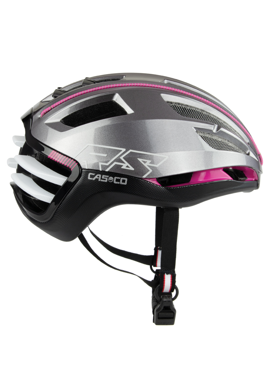 Aerodynamická cyklistická helma s dvojitou skořepinovou konstrukcí pro maximální bezpečnost - vnitřní síťovina pro optimální ventilaci a komfort během jízdy - zadní bezpečnostní systém pro stabilní aerodynamiku ve všech polohách - přizpůsobení velikosti pomocí upínacího kroužku - rychlé a snadné sejmutí přilby díky patentovanému systému CASCOLOC - elegantní kombinace antracitové a fuchsiové barvy
