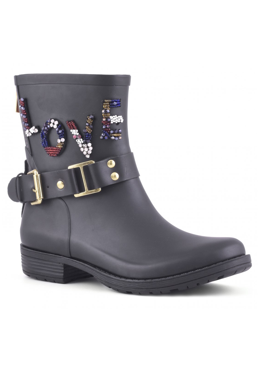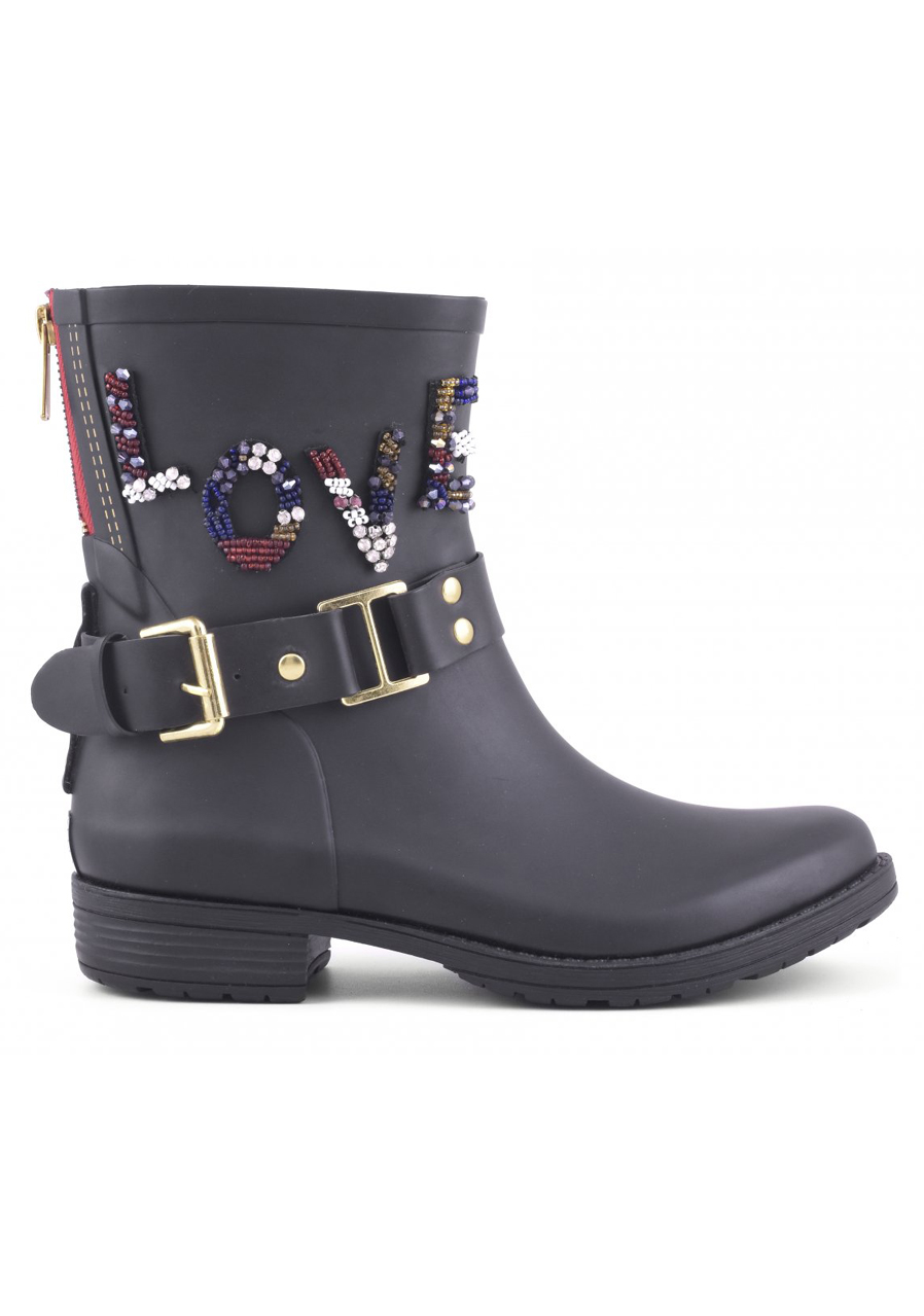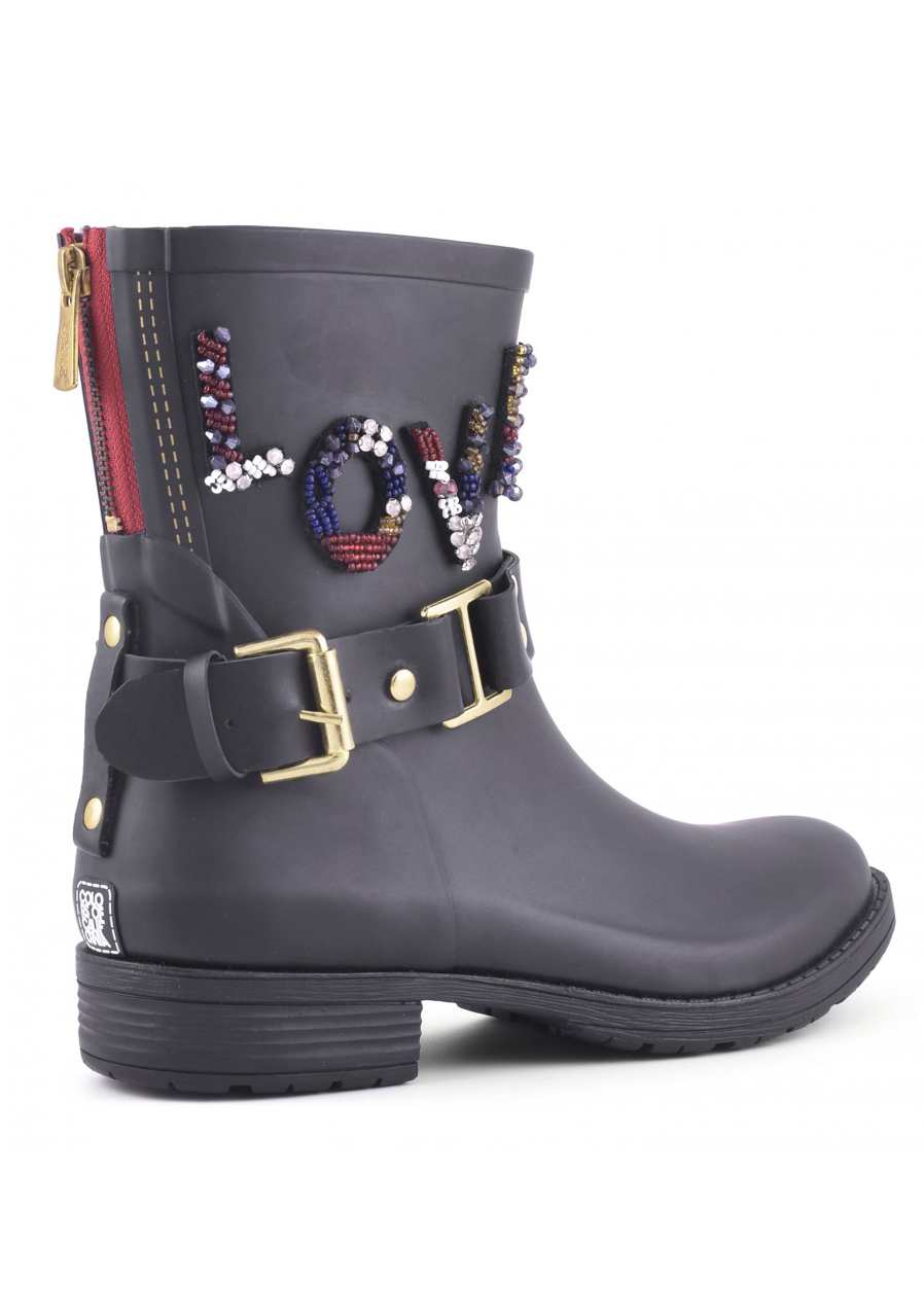 Dámské gumáky Colors of California Camperos Rubber Boot LOVE Patc black