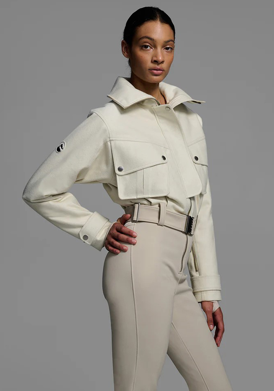 Lyžařský overal Telluride spojuje praktický design s přiléhavým tvarovaným střihem který podtrhuje ženskou siluetu. Zateplený vlněný vrchní díl a nepromokavé italské 4cestné strečové kalhoty s 20K voděodolností vytvářejí ideální kombinaci pohodlí tepla a volnosti pohybu. Černé pogumované kování zipy Aquaguard a nastavitelný pásek dodávají modelu moderní funkčnost a nadčasový styl inspirovaný pracovním oblečením. Telluride je špičkový overal pro lyžování horské dny i elegantní zimní nošení.