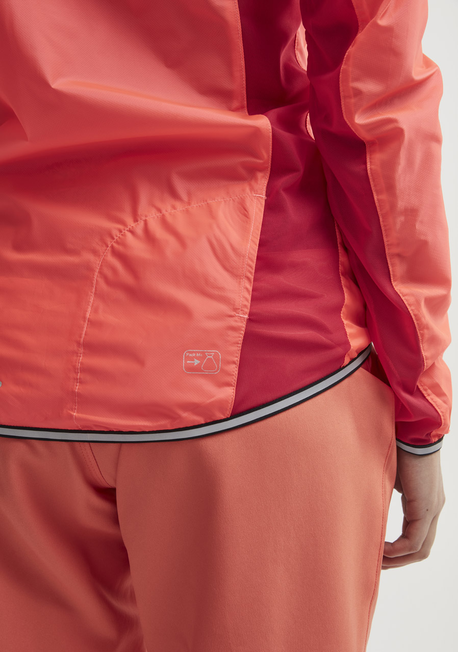 Dámská celorozepínací cyklistická bunda Craft Lithe W je navržena pro jarní a letní období s proměnlivým počasím. Díky ultralehkému materiálu s gramáží pouhých 37 g/m² je ideální pro cyklistky, které potřebují spolehlivou ochranu proti větru a lehkému dešti bez zatížení. Ergonomický střih přizpůsobený jezdecké pozici zajišťuje maximální pohodlí. Ventilační panely z elastické síťoviny v podpaží, po stranách a na vnitřní straně paží zvyšují prodyšnost při intenzivní aktivitě. Bunda je sbalitelná do vlastní kapsy skryté ve švu a nechybí ani výrazné reflexní prvky pro bezpečnost.