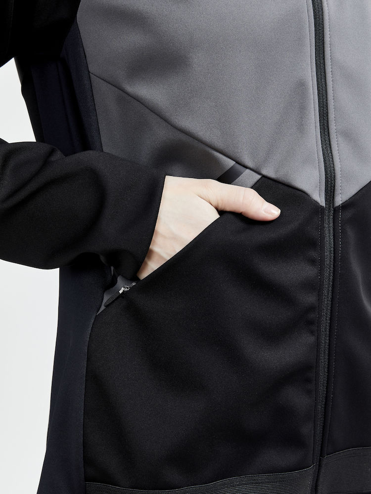 - softshellová bunda s kapucí CRAFT Glide s membránou VentAir Wind je určená na pohodové běžecké lyžování nebo jiné outdoorové aktivity v zimním období. Materiál: Přední a zádová část - 1. vrstva - 100% polyester, 2. vrstva (membrána VentAir Wind) - 100% polyuretan, 3. vrstva - 100% polyester Vrchní zádová část - 87% polyester, 13% elastan Vodní sloupec: 8 000 mm; Prodyšnost: 8 000 g/m2/24h - třívrstvá technologie s odolností vůči větru a vodě - v podpaží a po stranách prodyšný elastický materiál - 2 přední kapsy na zip - kapuce s regulovatelným objemem - rukávy a spodní část bundy ukončené do elastické paspule - lepené detaily