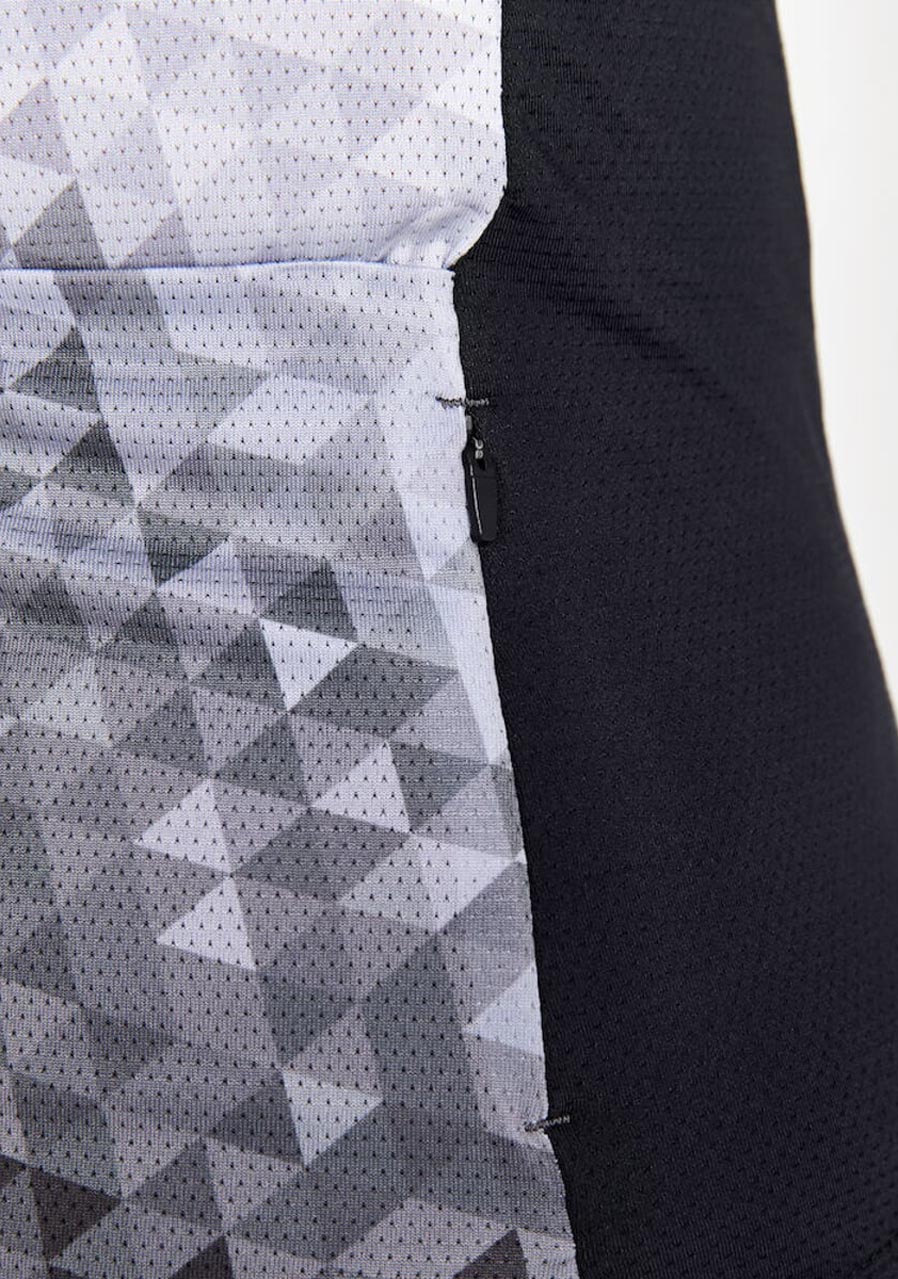 Zadní část tílka je vybavena trojdílnou kapsou a praktickou skrytou kapsičkou na zip pro bezpečné uložení drobností. Spodní lem je zakončen elastickou gumou se silikonovým potiskem, která zajišťuje stabilní usazení během pohybu.