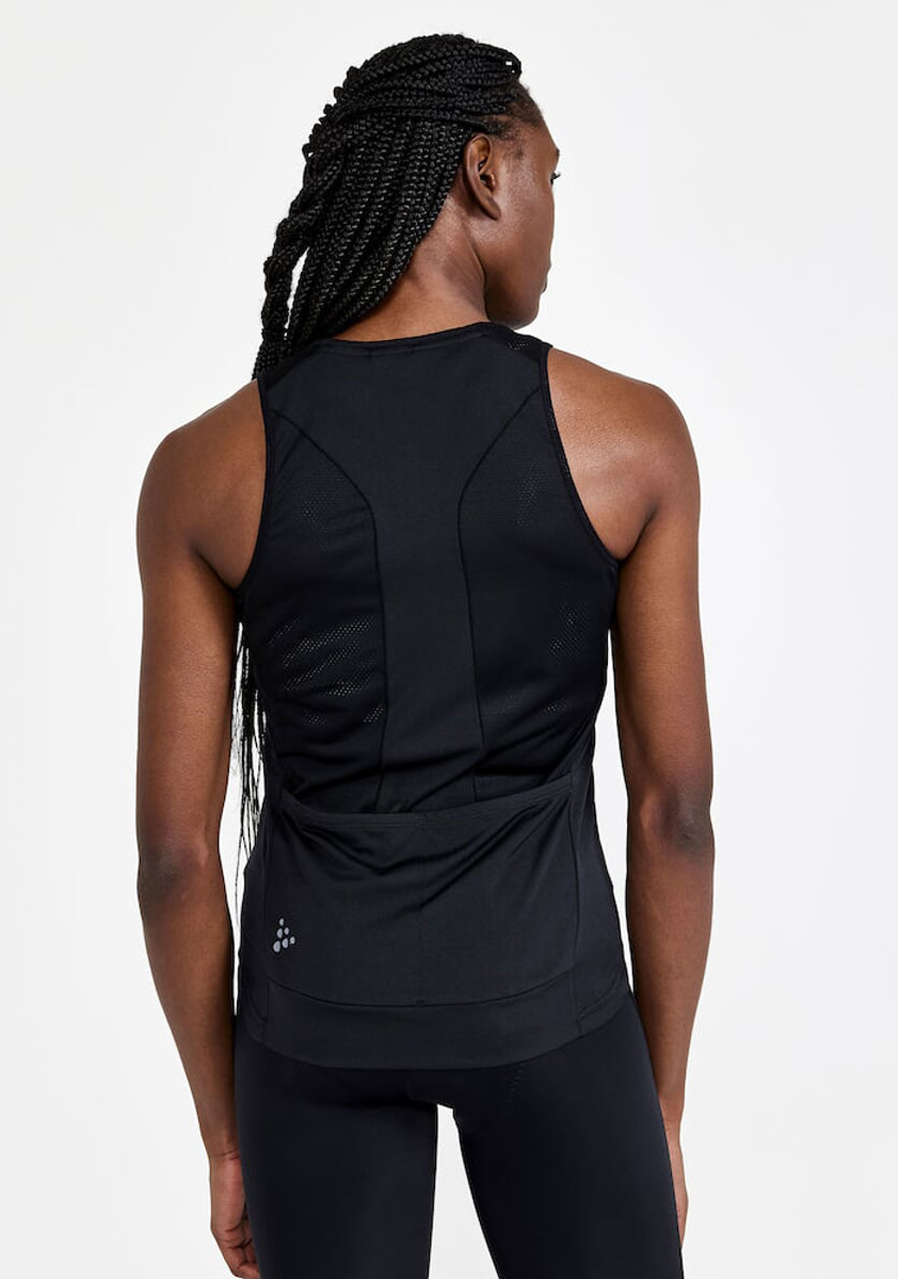 Craft Core Endur W v černé barvě je dámské cyklistické tílko určené pro letní jízdy v pohodovém tempu. Jeho komfortní volnější střih poskytuje příjemnou volnost pohybu a díky rychleschnoucímu materiálu zároveň efektivně odvádí vlhkost od těla. Tílko je ideální pro rekreační cyklistiku i lehké sportovní aktivity v horkých dnech.