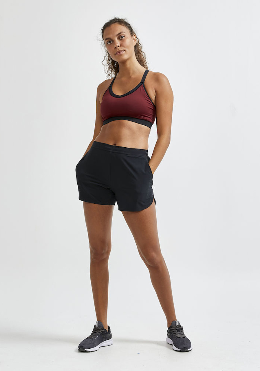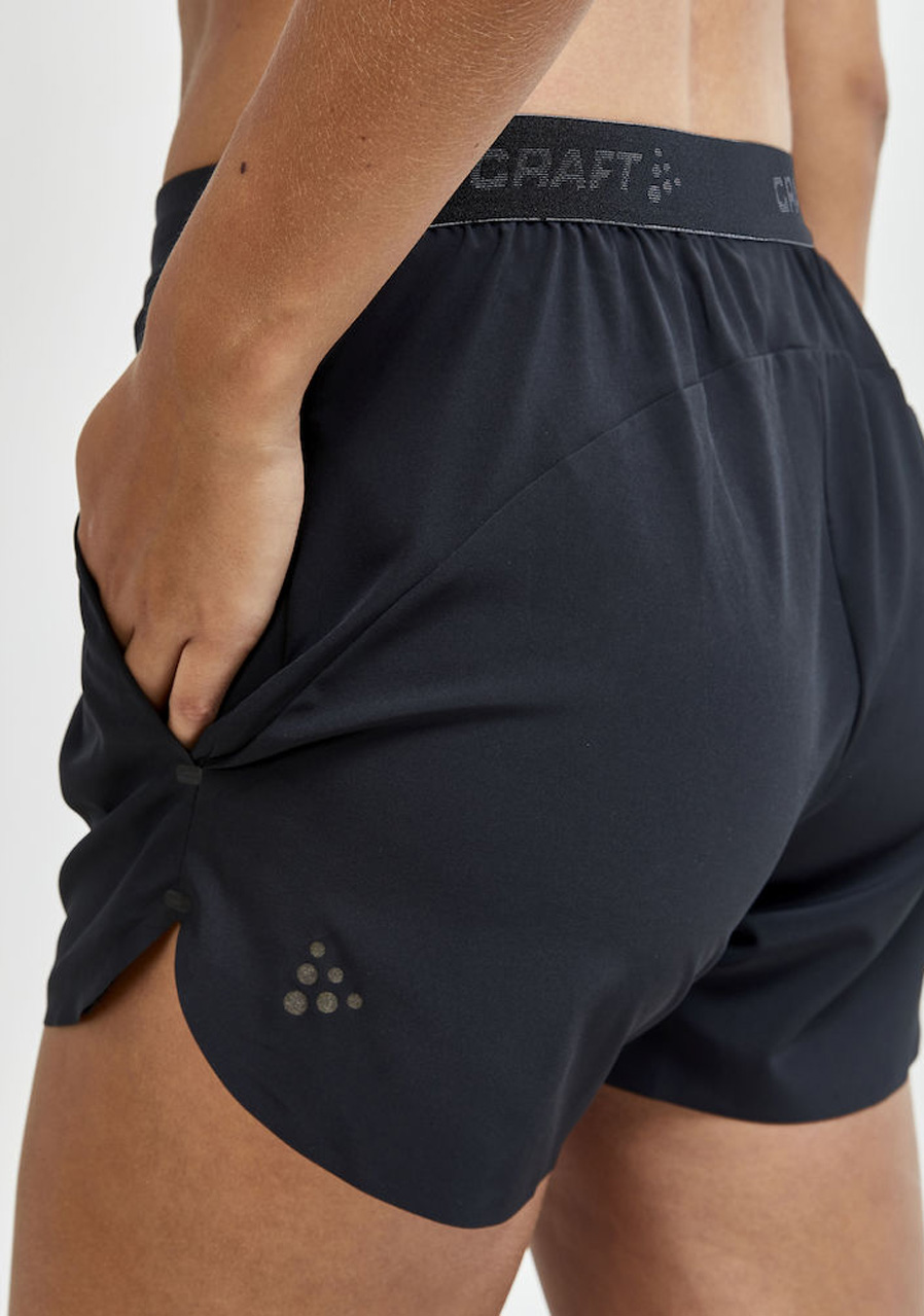 - šortky CRAFT ADV Essence 5" určené na běh a jiné sportovní aktivity. Materiál: 90% recyklovaný polyester, 10% elastan; 100% polyester - velmi lehký rychleschnoucí materiál - v zadním díle širší guma v pase v kombinaci se šňůrkou na stažení vpředu - po stranách krátké rozparky - 2 boční kapsy - reflexní ošetření