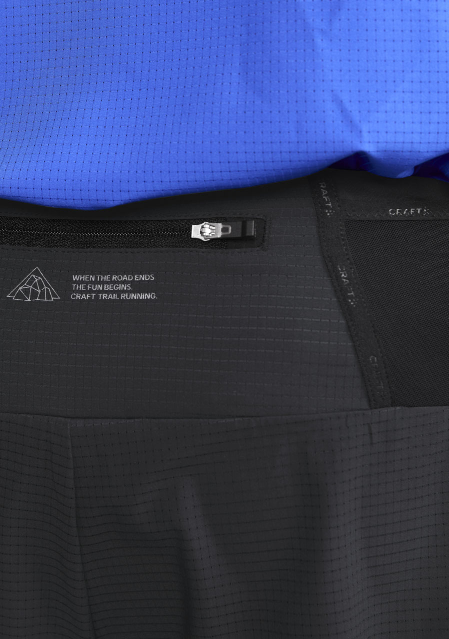Pánské trailové šortky Craft PRO Trail v univerzální černé barvě jsou navrženy pro intenzivní běh v terénu. Kombinují odolnost, funkčnost a lehkost v jednom. Díky elastickému a rychleschnoucímu materiálu, promyšlenému střihu a praktickým kapsám nabízí maximální komfort a volnost pohybu i v náročných podmínkách. Ideální volba pro traily, horské běhy i závody.