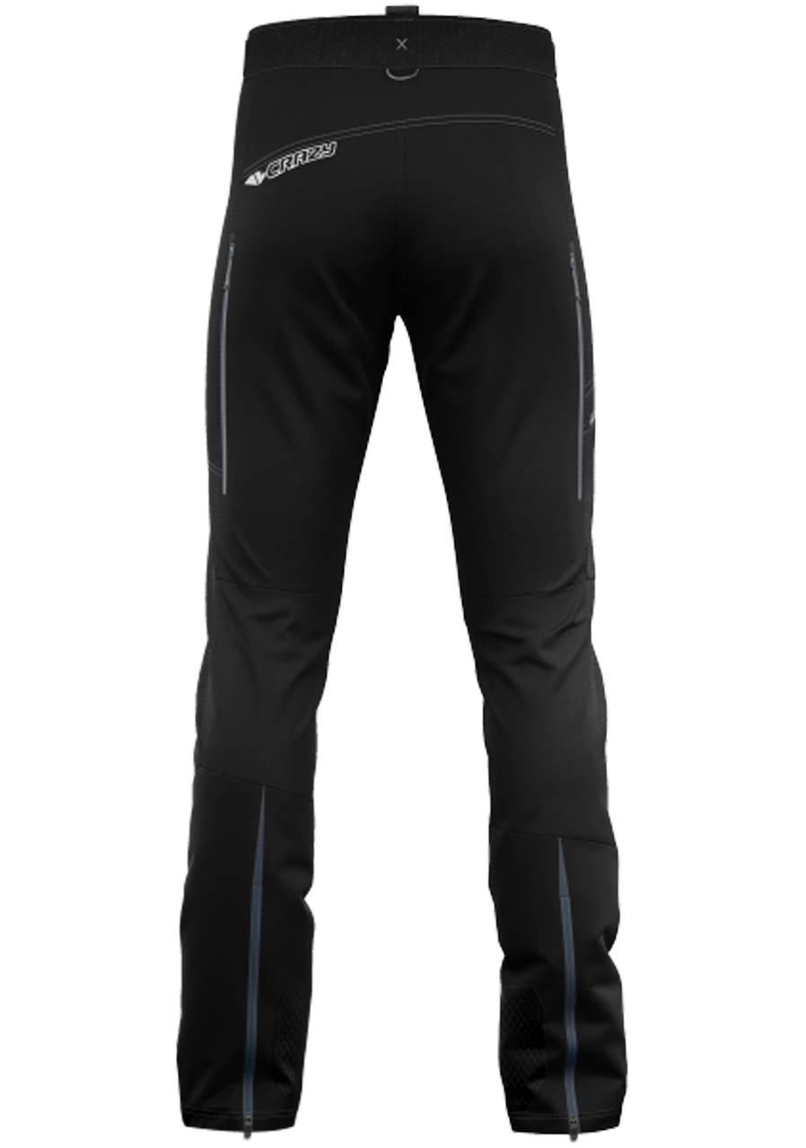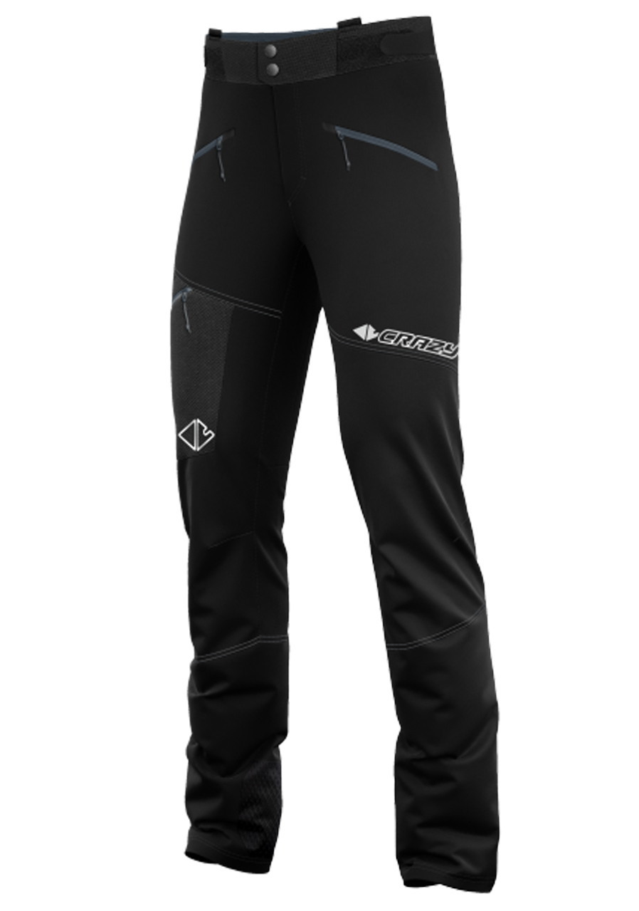 - vodoodpudivé spodní nohavice se skrytým panelem pro regulaci šíře na zip mají gumový lem, který zlepšuje přilnavost ke všem skialpinistickým botám