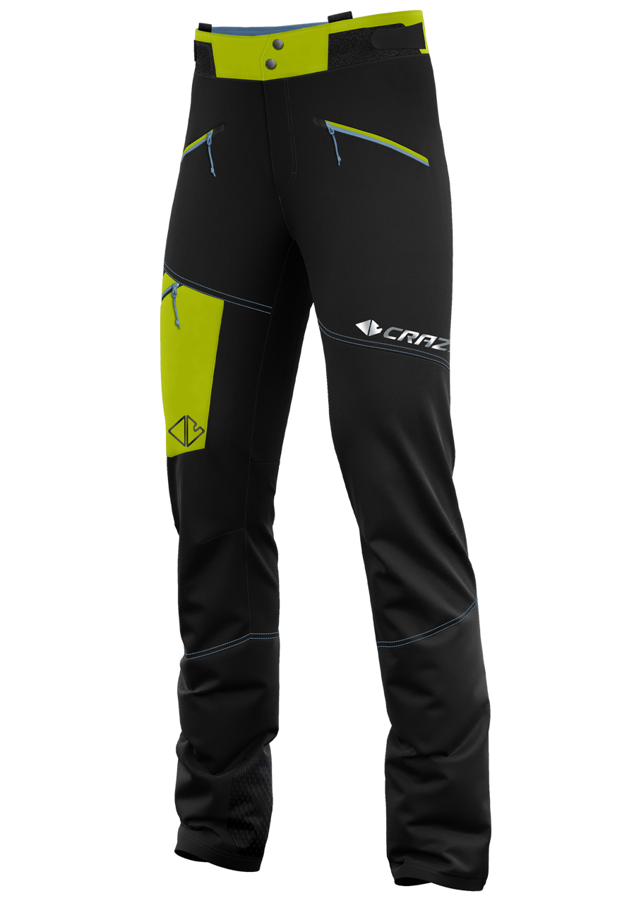 - vodoodpudivé spodní nohavice se skrytým panelem pro regulaci šíře na zip mají gumový lem, který zlepšuje přilnavost ke všem skialpinistickým botám