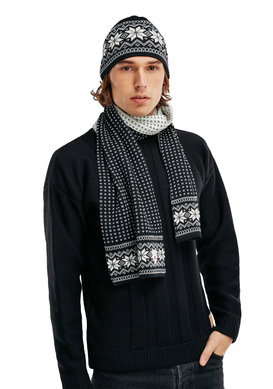 Elegantní šála Dale Of Norway Garmisch Scarf F v klasické barevné kombinaci Black a White nabízí stylový doplněk pro zimní období s typickou norskou kvalitou a designem. Díky měkkému materiálu poskytuje výbornou tepelnou izolaci a komfort při nošení v chladném počasí.