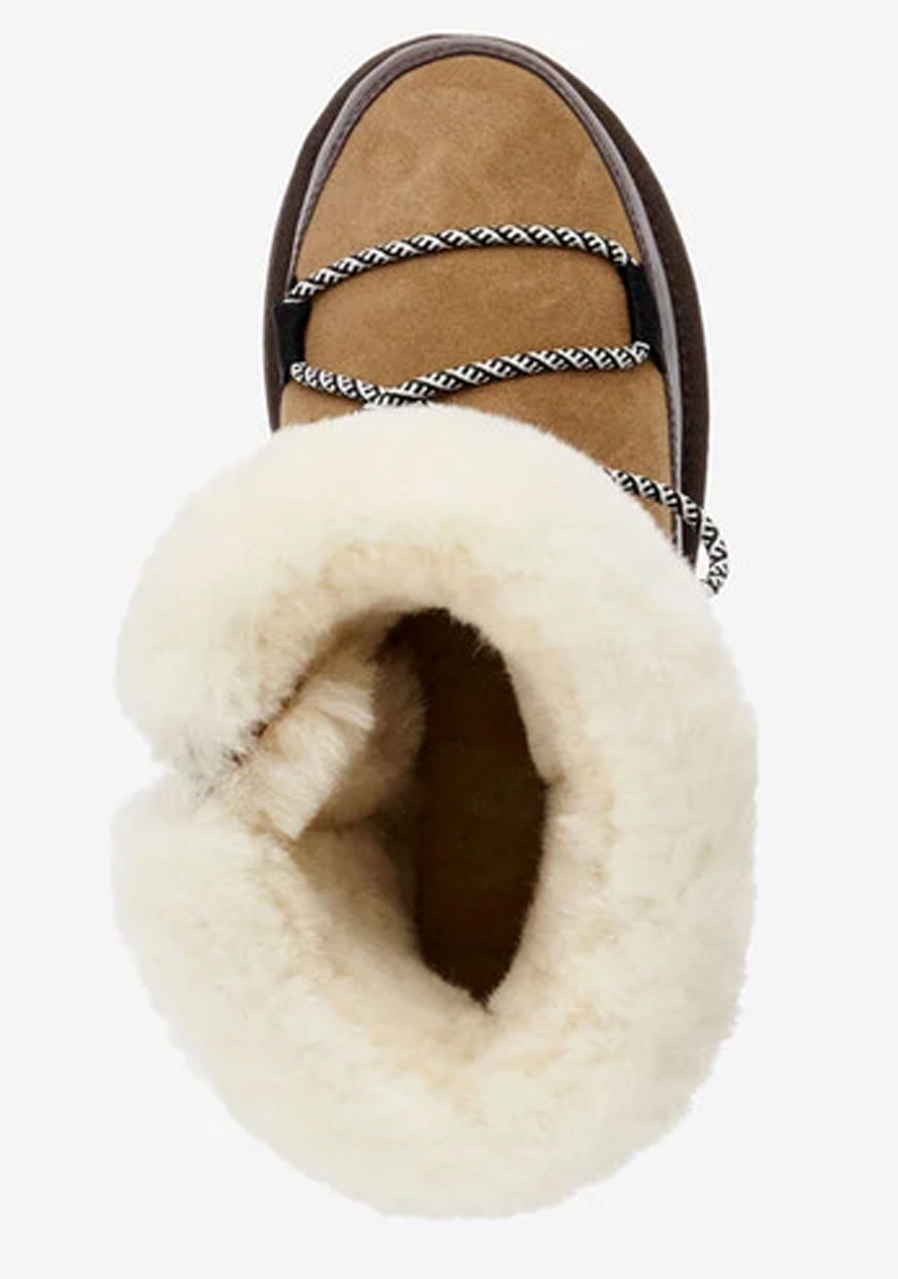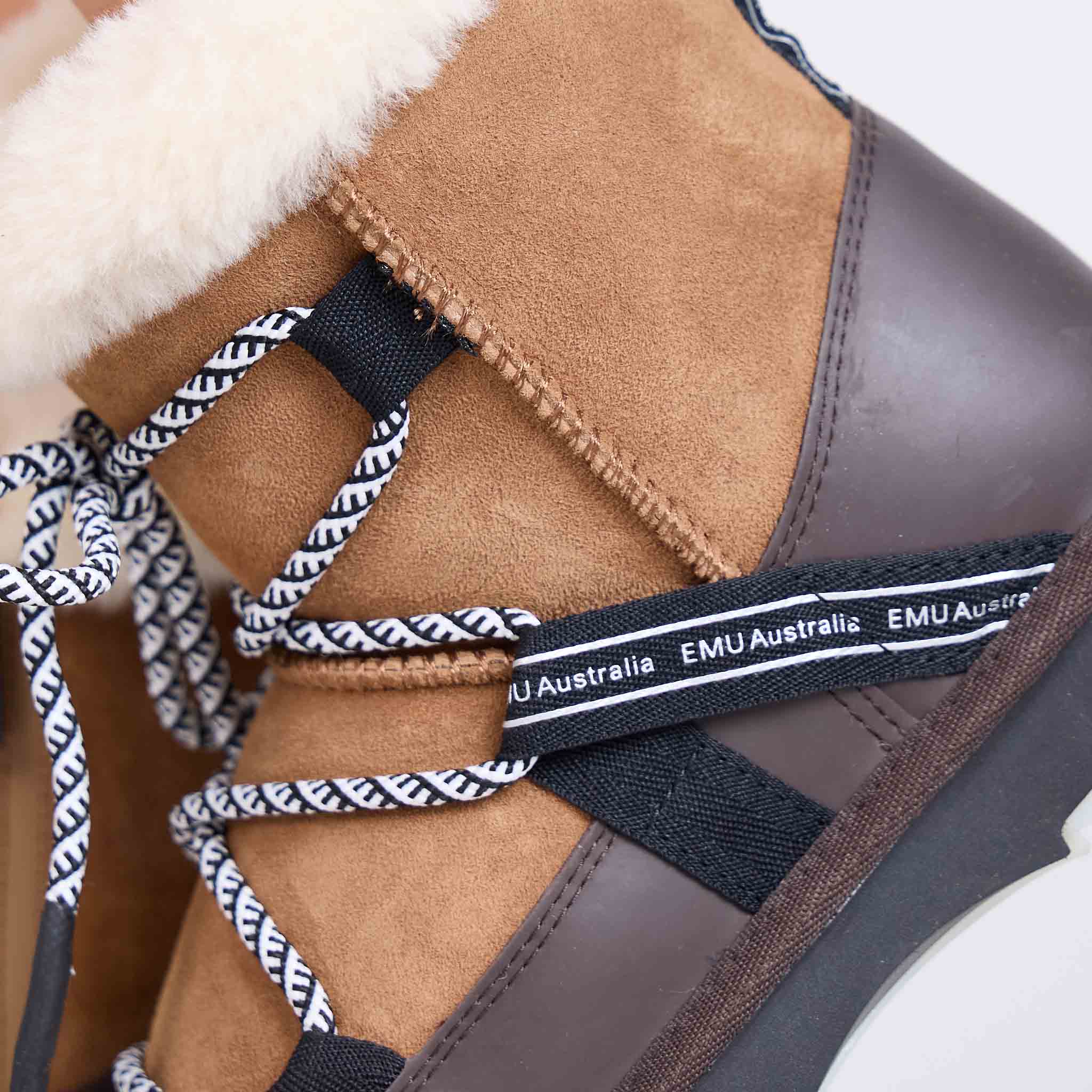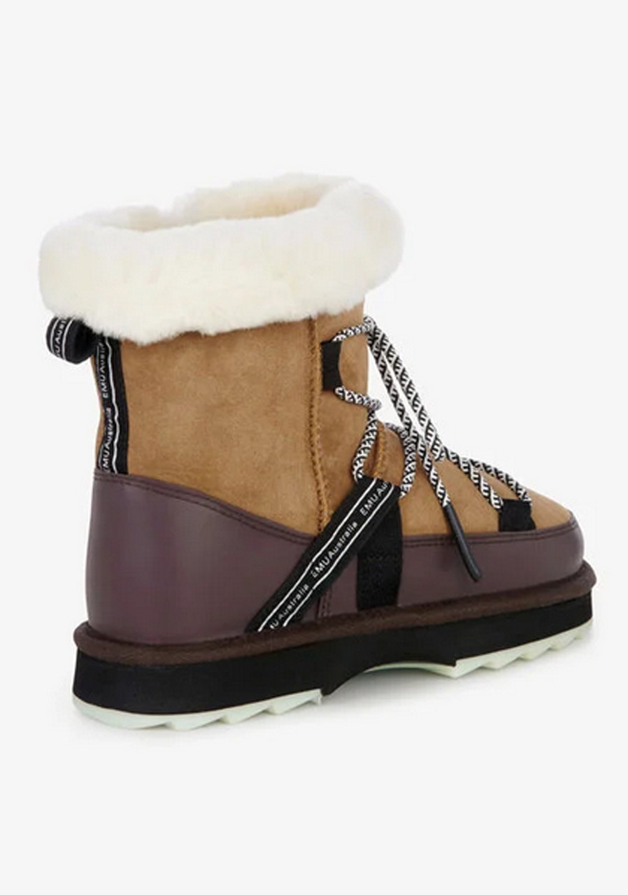 Sněhule z kolekce Emu Australia. Model vyroben z kombinace semišové kůže, textilního materiálu a syntetického materiálu.