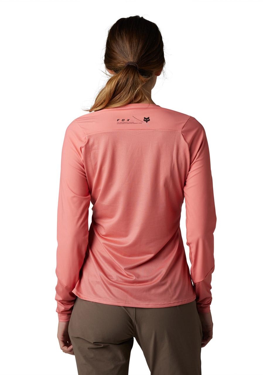 Technický dámský dres s dlouhými rukávy navržený pro intenzivní jízdu v terénu. Využívá materiál Flexair TruDri, který efektivně odvádí vlhkost, rychle schne a je velmi příjemný při kontaktu s pokožkou. Úzký střih poskytuje aerodynamii i maximální přizpůsobení během jízdy. Pro lepší ventilaci jsou boky vybaveny laserovou perforací. Ramena a lokty jsou chráněny odolnými panely z italského materiálu Carvico, který zvyšuje životnost a ochranu při pádech nebo při nošení batohu.