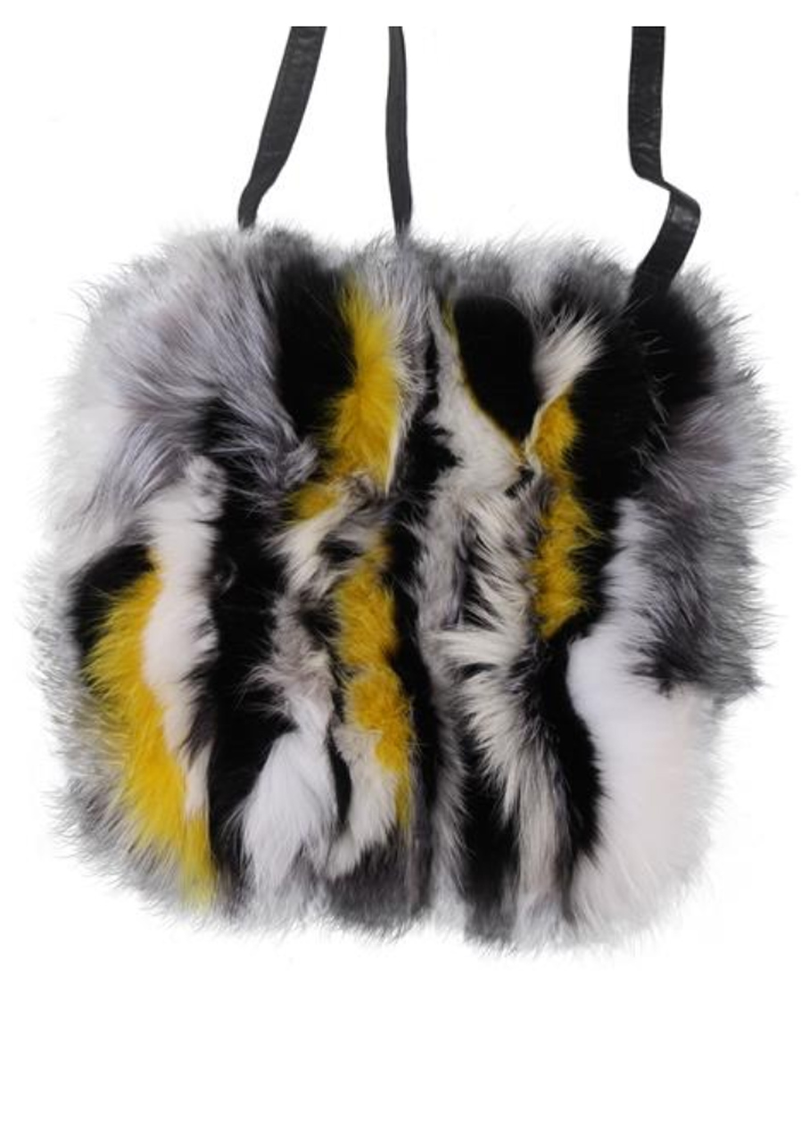 Exkluzivní dámská kabelka s liščí kožešinou v kontrastním žluto-šedém provedení