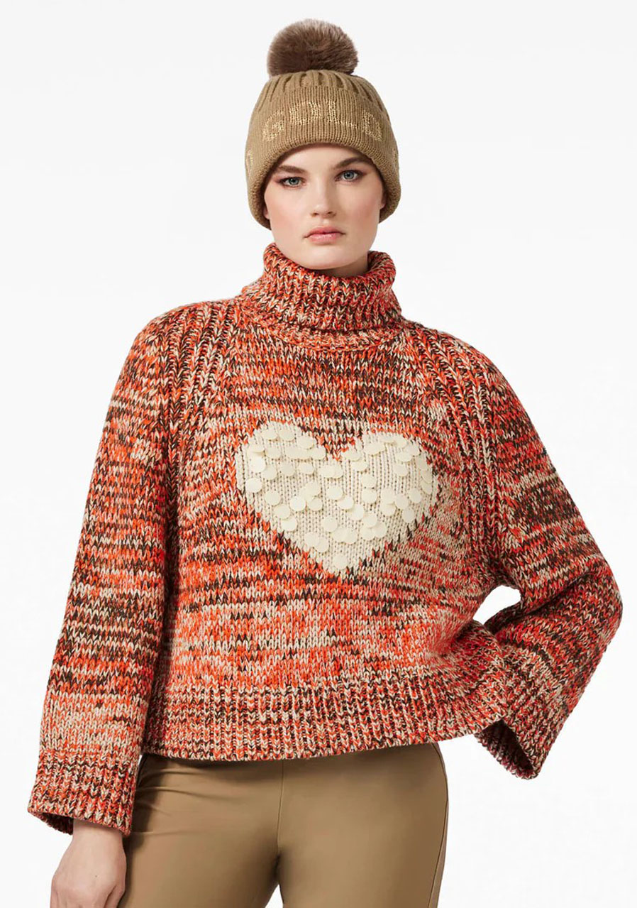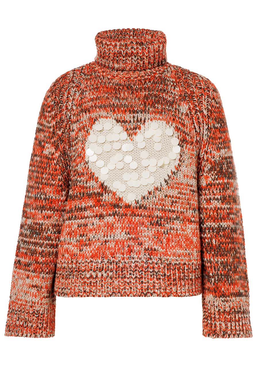 Svetr Goldbergh Aimee Long Sleeve Knit Sweater v barevné kombinaci Army/Orange je stylový a univerzální kousek, ideální pro běžné nošení v zimě. Tento hrubě pletený svetr je vyroben ze směsi akrylu a vlny, což zajišťuje hřejivost a pohodlí s jemným pocitem na dotek. Má volný střih s rovnými rukávy a ohrnovací žebrovaný límec pro uvolněný a ležérní vzhled. Svetr je ideální pro lehké outdoorové aktivity nebo jako vrstva pod bundou. Srdcový vzor na hrudi s jemnými flitry přidává svetru elegantní vzhled.