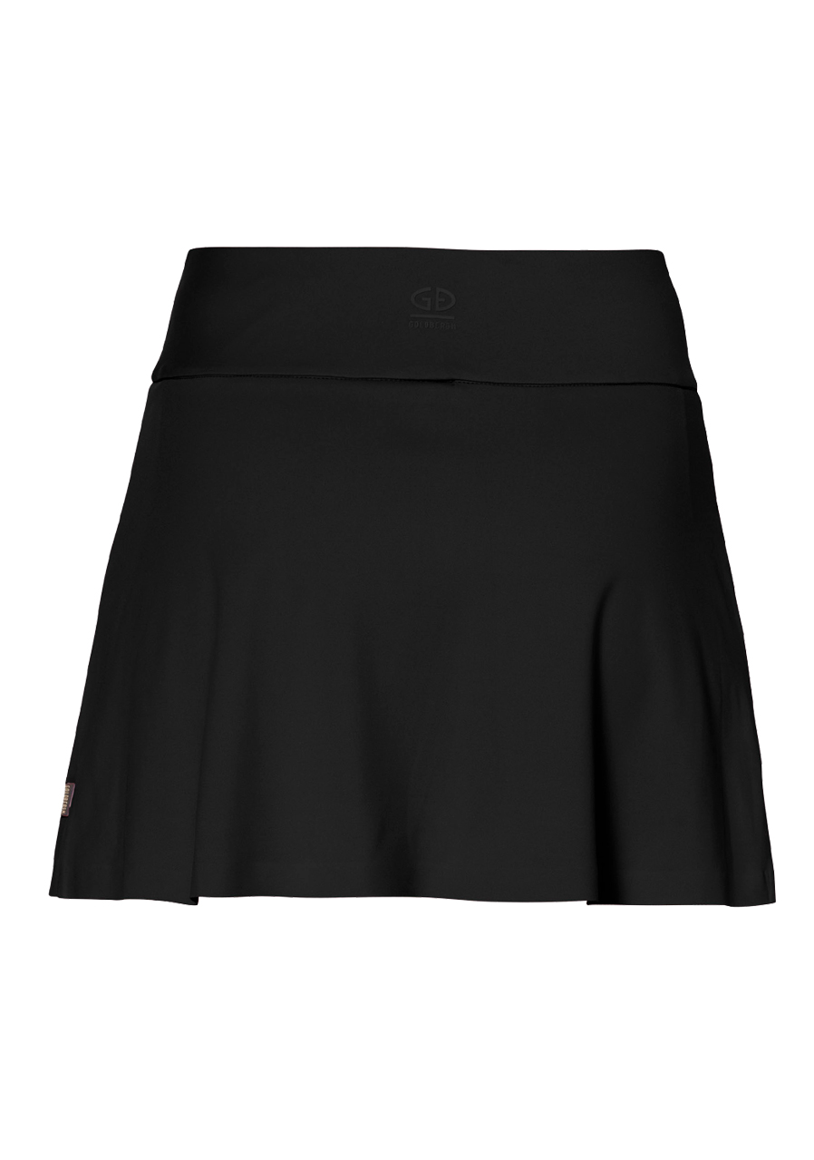 Dámská černá sportovní sukně Goldbergh Anais v prodloužené délce. Velice pružný materiál, který je vdušný a bude skvělým společníkem pro sport. Sukně se hodí na tenis či golf, a můžete v ní vyrazit i do města. Vhodná pro aktivní ženy, které jsou rády aktivní a přitom chtějí cítít pohodlí. Vnitřní elastické kraťasy vám poskytují větší bezpečí a zároveň obsahují dvě postranní kapsy.