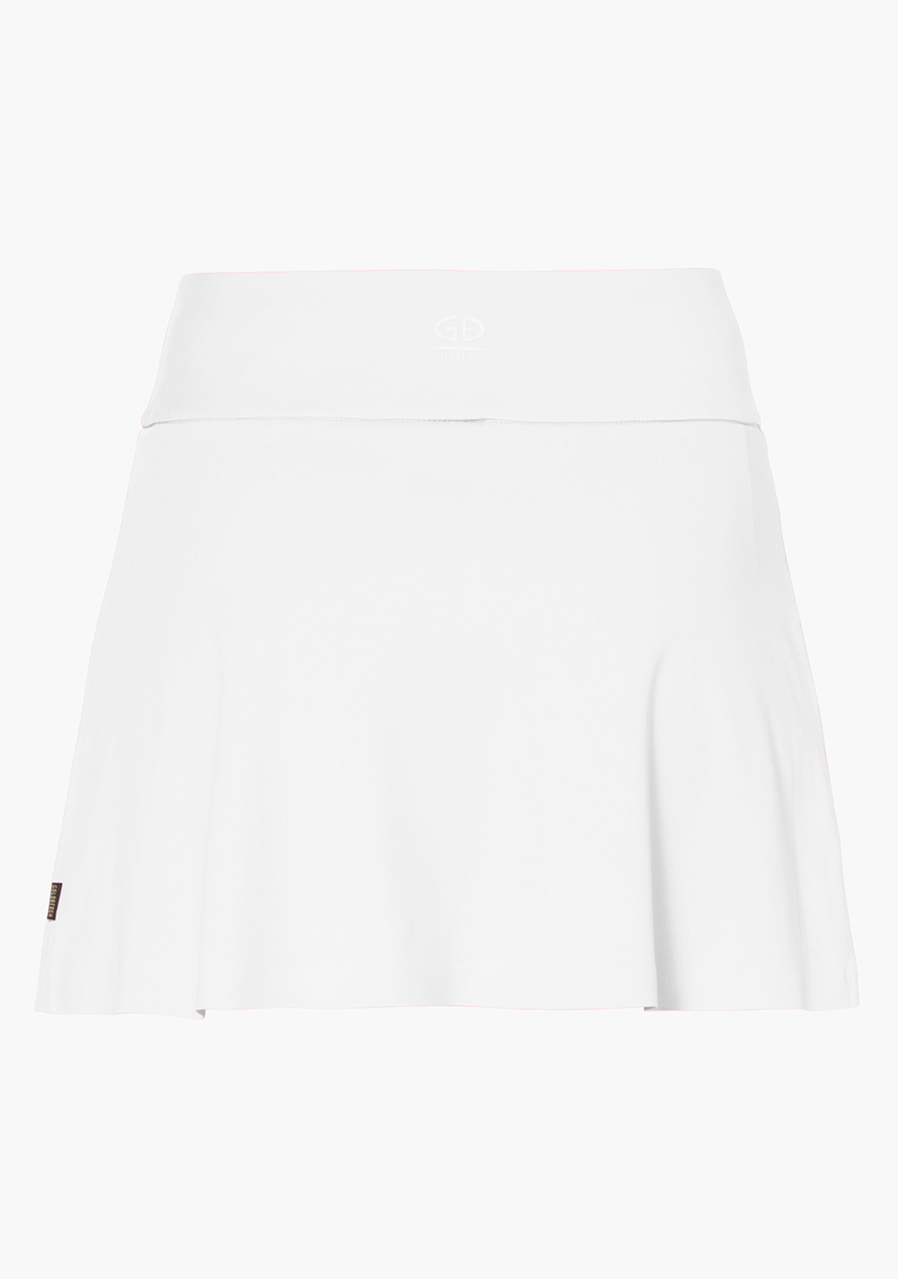 Když se výkon potká s elegancí. Dámská bílá sukně Goldbergh Anais v sobě spojuje sportovní duši a vytříbený styl. Lehký, pružný a prodyšný materiál se pohybuje s tebou, ať už míříš na tenisový kurt, golfové hřiště nebo do města na kávu. Vnitřní elastické šortky s kapsami zaručí komfort i jistotu v každém kroku. Detaily jako decentní rozparek a zlaté logo vpředu i vzadu dodávají celému looku ten správný nádech luxusu. Ideální kousek pro moderní ženu, která miluje pohyb, ale nikdy nesleví ze stylu.