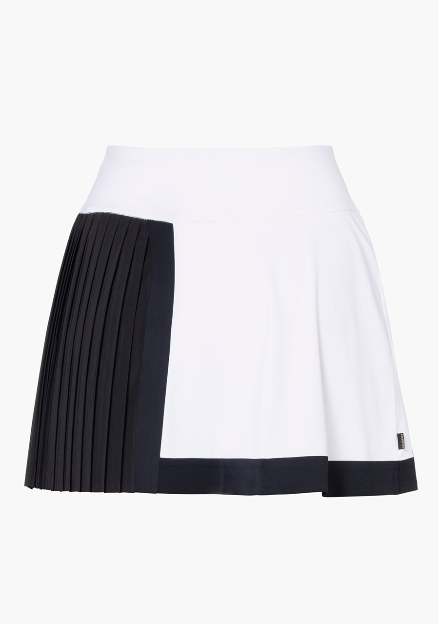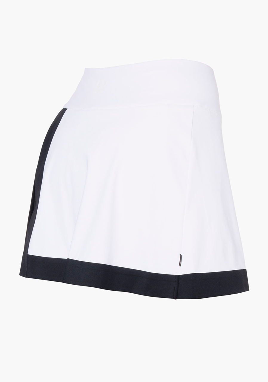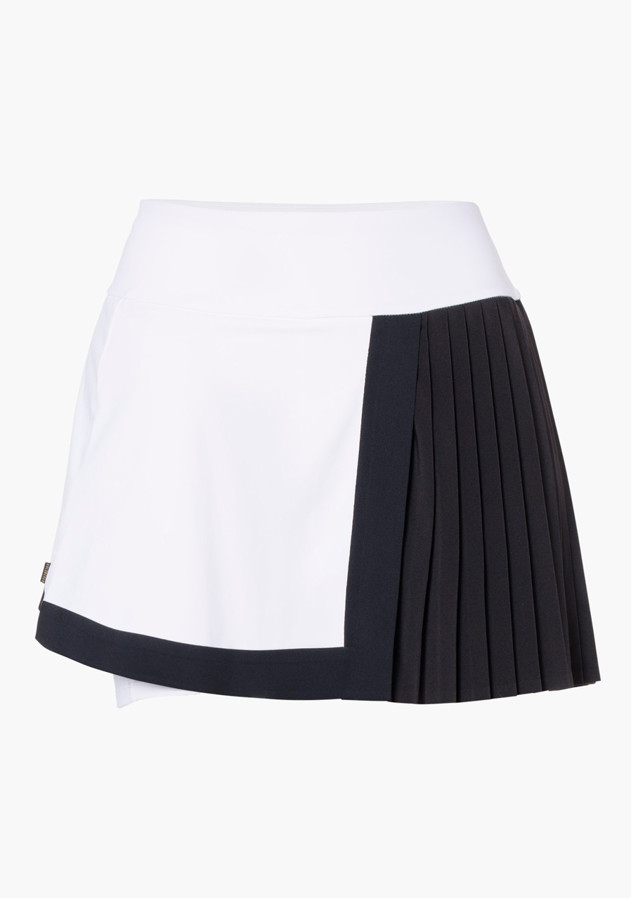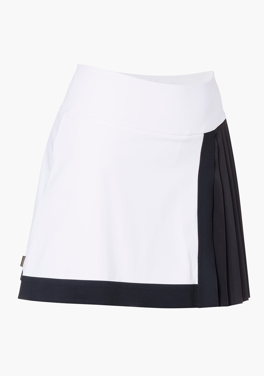 Dámská sukně Goldbergh Axelle je dokonalý doplněk k aktivnímu sportu, a je navržena tak, abyste se při sportu cítila pohodlně, ale také krásně oblečená. Vnejší sukně má pohodlný střih s plisovaným bočním panelem, ten dodá sukni nadčasový a dynamický vzhled. Bezpečí a pohodlí vám také zajistí vnitřní přiléhavé šortky s elastickým pasem, který navíc zajistí, aby se sukně neposunula. Drobnosti je možné schovat do praktických kapes. Díky kvalitnímu materiálu je sukně prodyšná, rychle schne a také pohlcuje zápach, což oceníte během intenzivního tréninku.