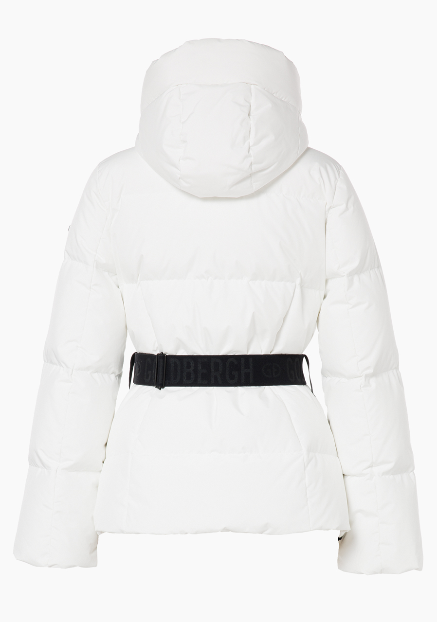 Goldbergh Bowy Ski Jacket v krémové barvě je luxusní dámská lyžařská bunda, která kombinuje styl a funkčnost. Bunda ve střihu regular fit je vyrobena z elastických materiálů pro maximální pohodlí a volnost pohybu, zároveň nabízí odolnost proti vodě, což zajišťuje ochranu před deštěm i sněhem. Je vybavena certifikovaným peřím RDS, což zaručuje, že byl materiál získán eticky. Design zahrnuje dva pásky, pevnou kapuci, manžety uvnitř rukávů a odnímatelný sněhový pás. Praktické detaily jako kapsa na skipas a dvě vnější a dvě vnitřní kapsy zvyšují její funkčnost. K dispozici jsou i úpravy proti zápachu pro svěží pocit během nošení. Tento model je perfektní volbou pro ženy, které hledají nejen kvalitní lyžařské vybavení, ale i elegantní vzhled na sjezdovkách.