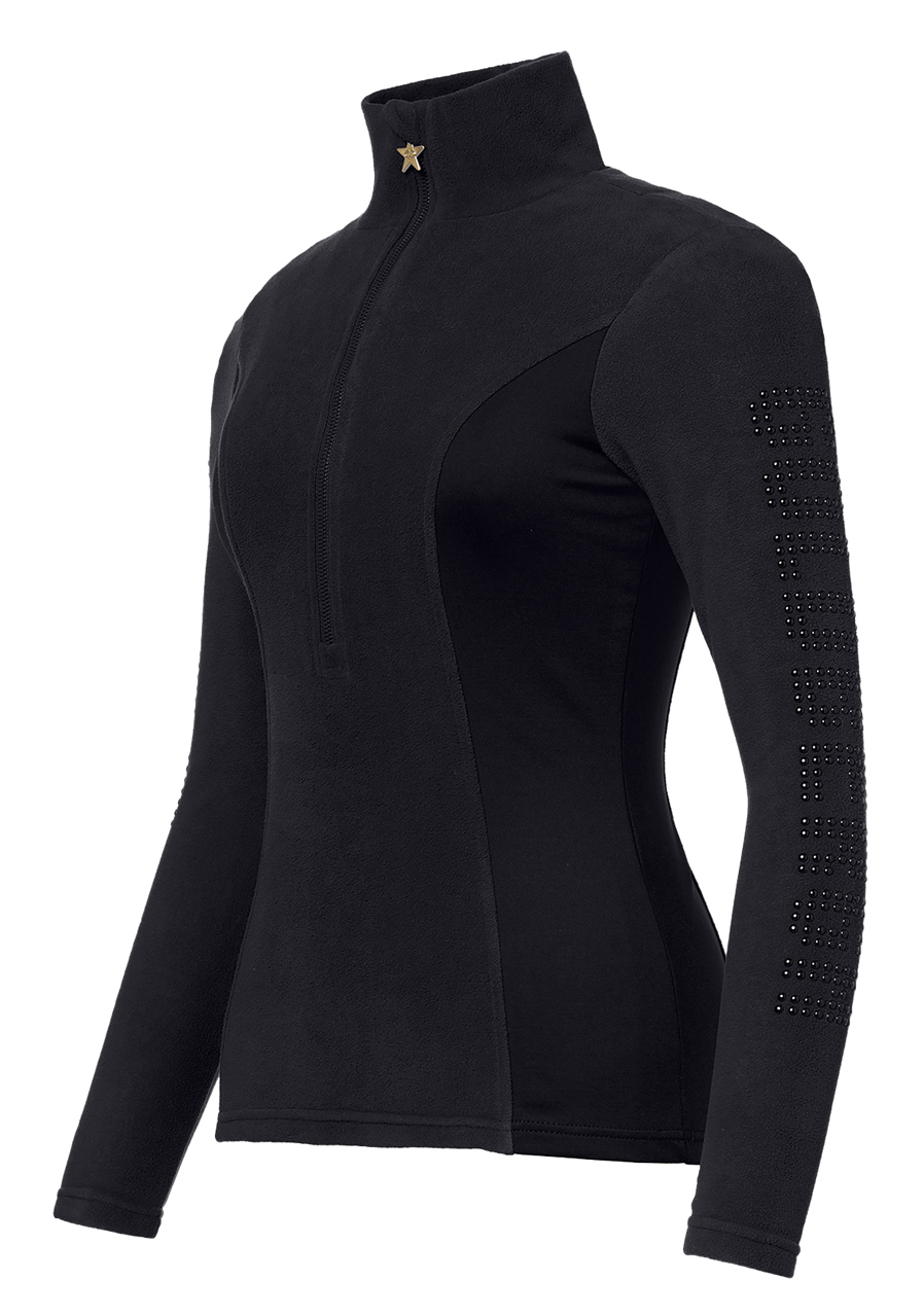 Toto slim fit triko je vyrobeno z měkkého a lehkého polarfleece materiálu s interlock panely po stranách, které zajišťují volnost pohybu a komfort. Materiál nabízí rychlé schnutí, řízení vlhkosti a anti-odor úpravu. Triko má úzký stojáček, prodloužený ½ zip a rukávy zdobené motivem „Ski Goldbergh“ v decentních kovech. Ideální jako střední vrstva pod bundu při zimních sportech.