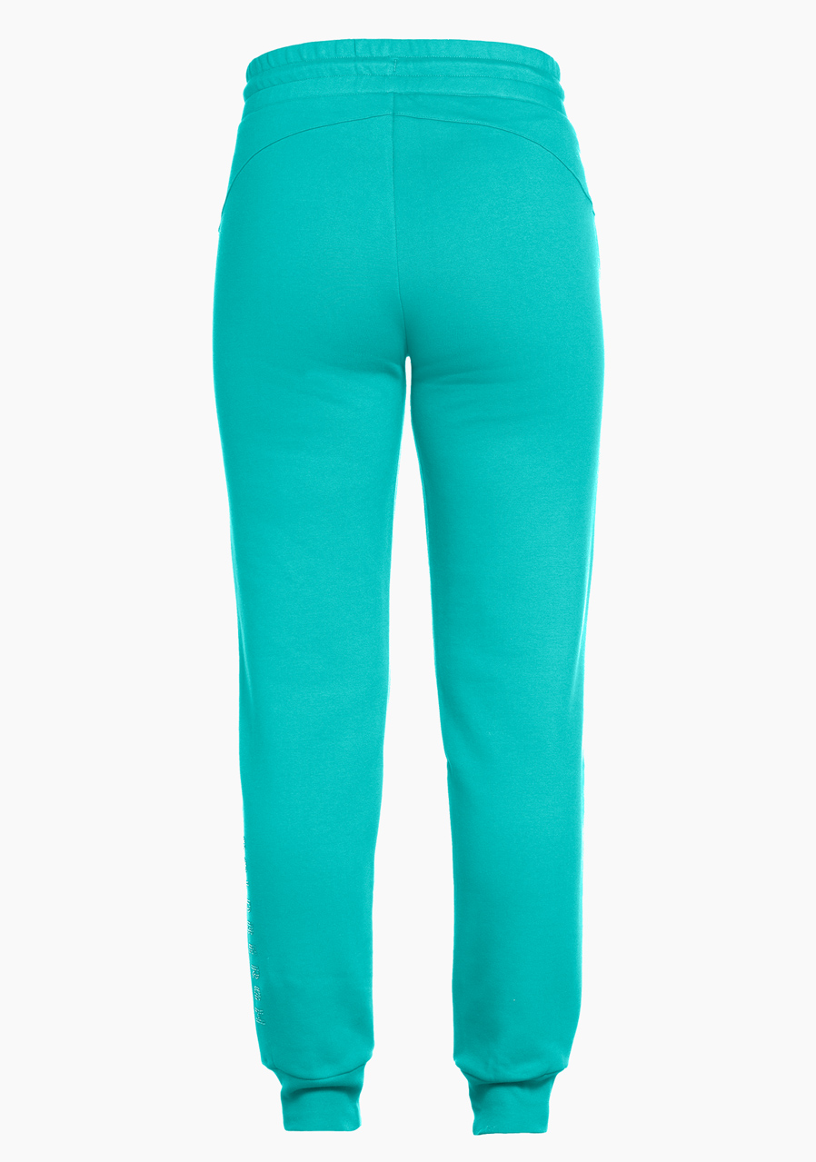 Goldbergh Bright Sweatpants v zelené barvě jsou stylové a pohodlné tepláky vhodné jak pro každodenní nošení, tak i pro lehké outdoorové aktivity. Jsou vyrobené z fleece materiálu s jemně kartáčovanou vnitřní stranou, což poskytuje příjemný pocit na kůži a dobrou izolaci. Tyto tepláky jsou prodyšné a díky elastickému pasu a žebrovaným manžetám dobře sedí na těle. Mají postranní kapsy a stahovací šňůrku v pase s kovovými zakončeními. Jsou volného střihu, a proto jsou vhodné pro volnočasové aktivity i běžné nošení.
