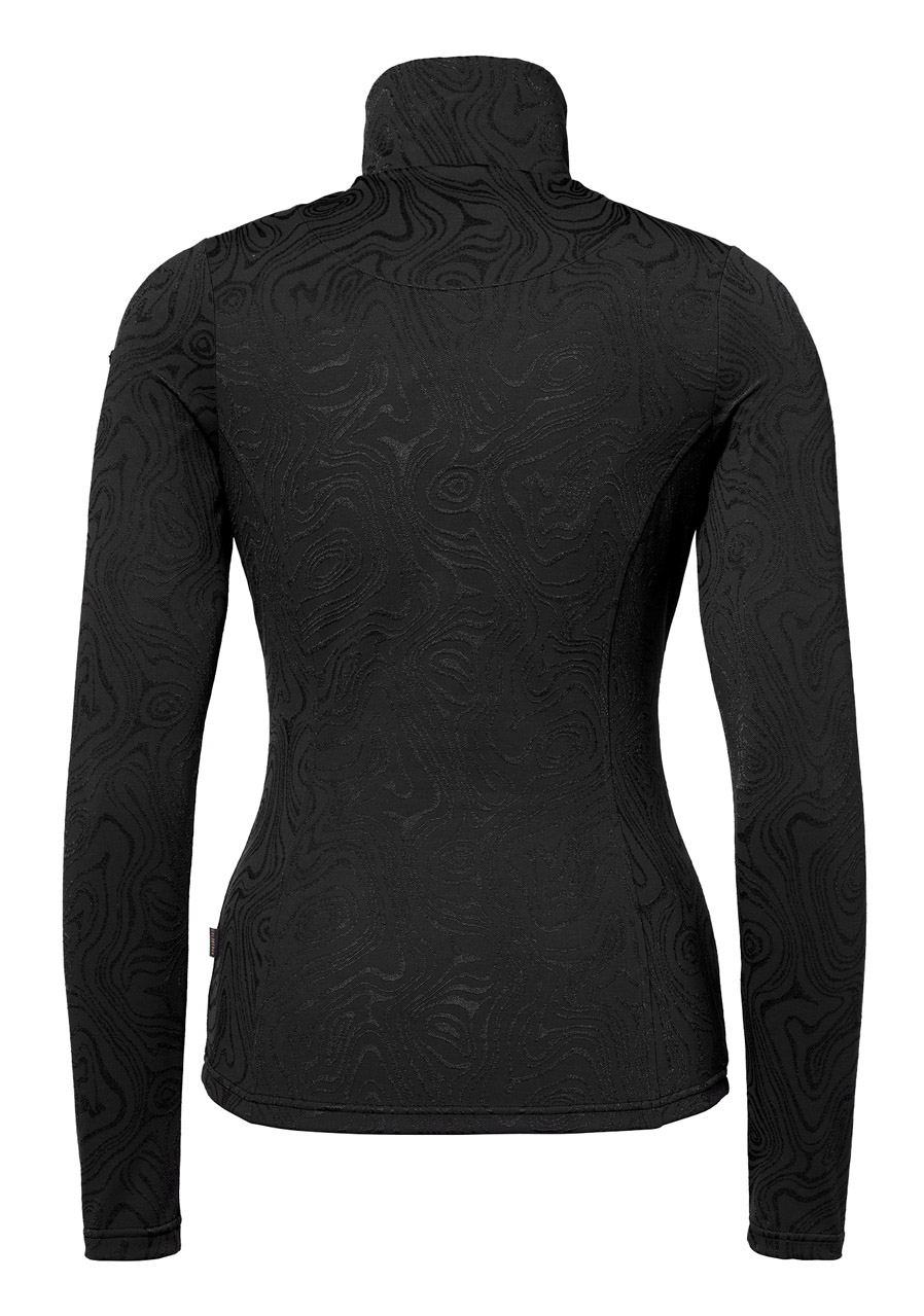 Toto slim fit triko je vyrobeno ze speciálního lesklého a matného žakárového úpletu se spirálovým vzorem, který kombinuje funkčnost s luxusním vzhledem. Materiál nabízí řízení vlhkosti, rychlé schnutí a anti-odor úpravu pro maximální komfort při sportu. Triko má úzký stojáček, prodloužený ½ zip s hvězdovým jezdcem a kovovou značku na rukávu, která podtrhuje prémiový charakter modelu.
