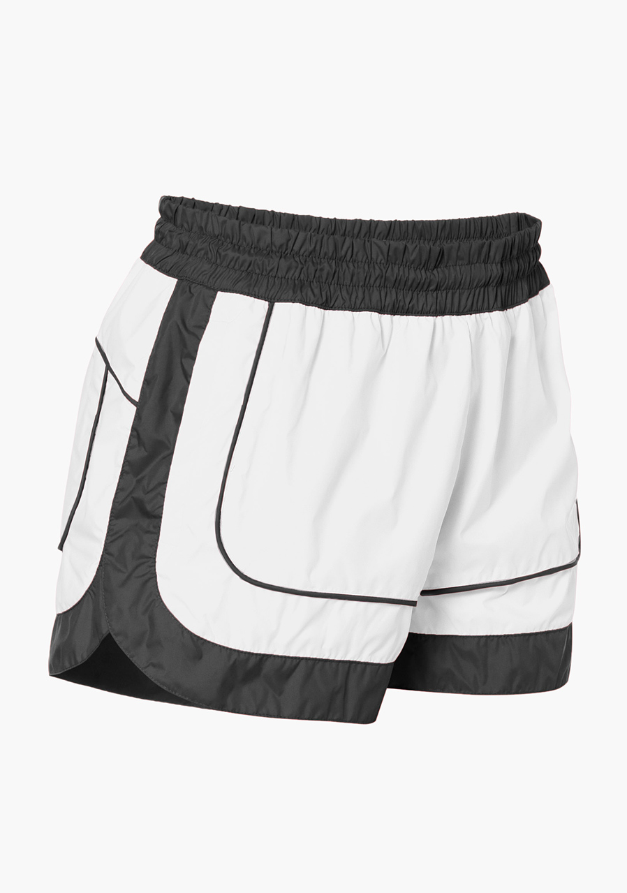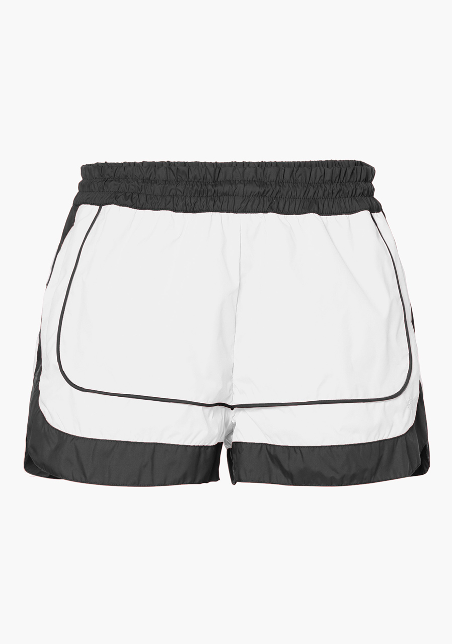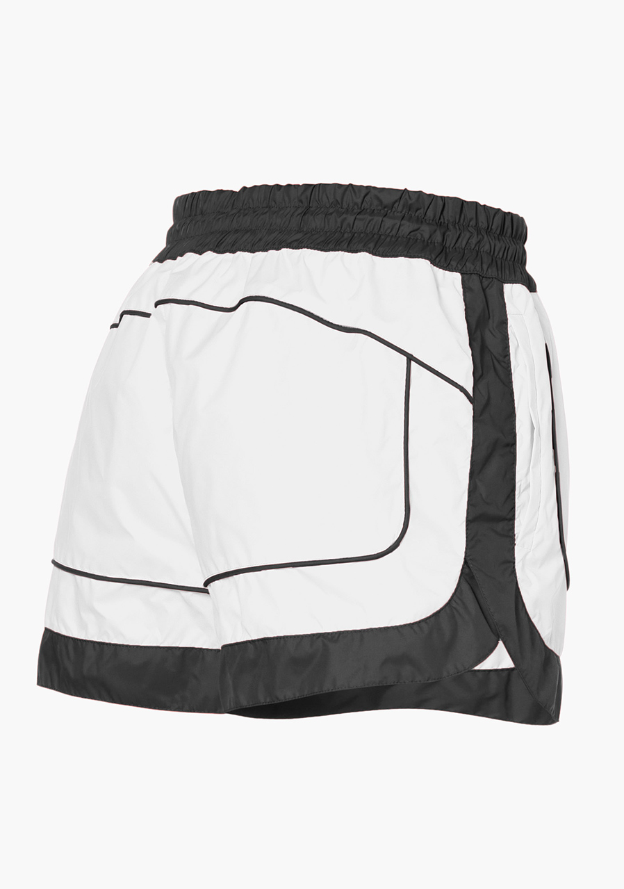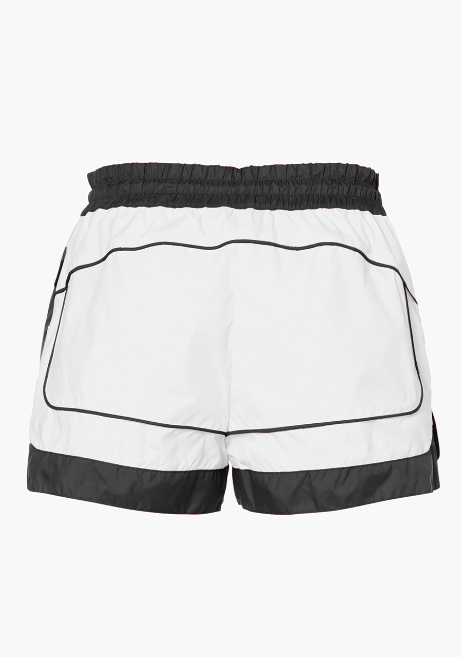 Krátké dámské šortky v bílé barvě, s pružným pasem, který drží šortky neustále na stejném místě. Vyrazit můžete v šortkách za sportem nebo na procházku, a budete se cítit pohodlně. Růžová barva dodává šortkám ženskost a eleganci.