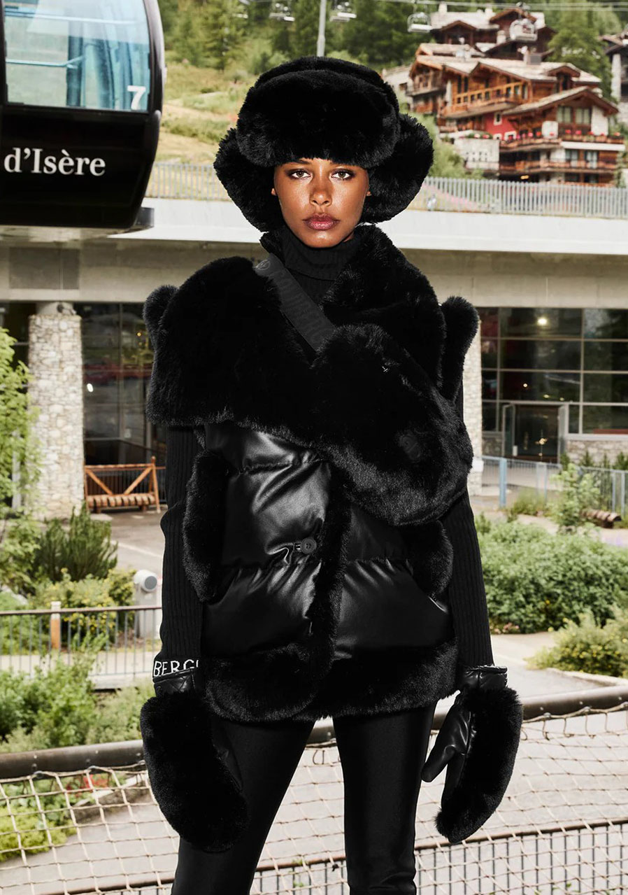 Čepice Goldbergh Cher Fluffy Aviator Hat v černé barvě je stylový zimní doplněk, který v sobě kombinuje funkčnost a módní design. Tato luxusní beranice je vyrobena z jemné umělé kožešiny (faux fur) a má klasický pilotní střih s ohrnovacími klapkami na uši, které vás udrží v teple i v nejchladnějších dnech. Ozdobné prvky zahrnují šňůrky z umělé kůže s kovovými zakončeními a ikonické gumové logo Goldbergh na zadní straně. Vnitřní podšívka je z lehkého tkaného taftu, který je zčásti vyroben z recyklovaného polyesteru, což dodává čepici ekologický rozměr. Tento model je elegantní a univerzální, ideální na hory i pro vaše zimní procházky po městě.