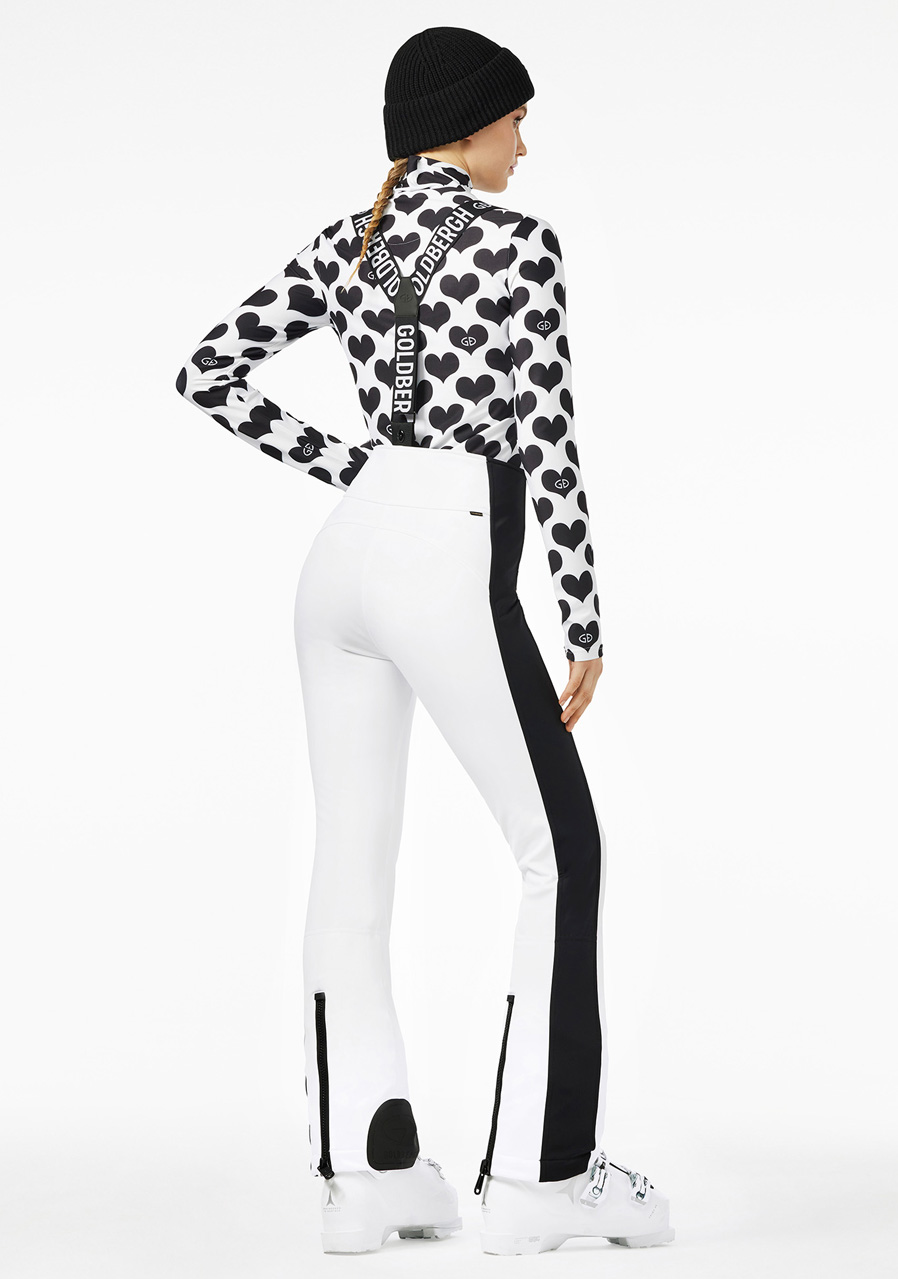 Rolák Goldbergh Chérie Ski Pully v barevné kombinaci bílá/černá je ideálním doplňkem pro zimní sporty i volný čas. Tento luxusní lyžařský rolák kombinuje styl a funkčnost s výraznou barvou, což z něj dělá nepřehlédnutelný kousek na svahu. Vyrobený z rychleschnoucího materiálu s technologií Powerstretch zajišťuje optimální pohodlí a volnost pohybu. Tkanina také poskytuje vynikající prodyšnost a odvádí vlhkost, čímž vás udrží v suchu i při intenzivních aktivitách. Detaily jako kovové logo na rukávu, přidávají výrobku luxusní vzhled. Díky přiléhavému střihu (slim fit) se skvěle hodí pod lyžařskou bundu a je vybaven vysokým elastickým límcem. Materiál je směsí polyesteru a elastanu, což zajišťuje odolnost a pružnost.