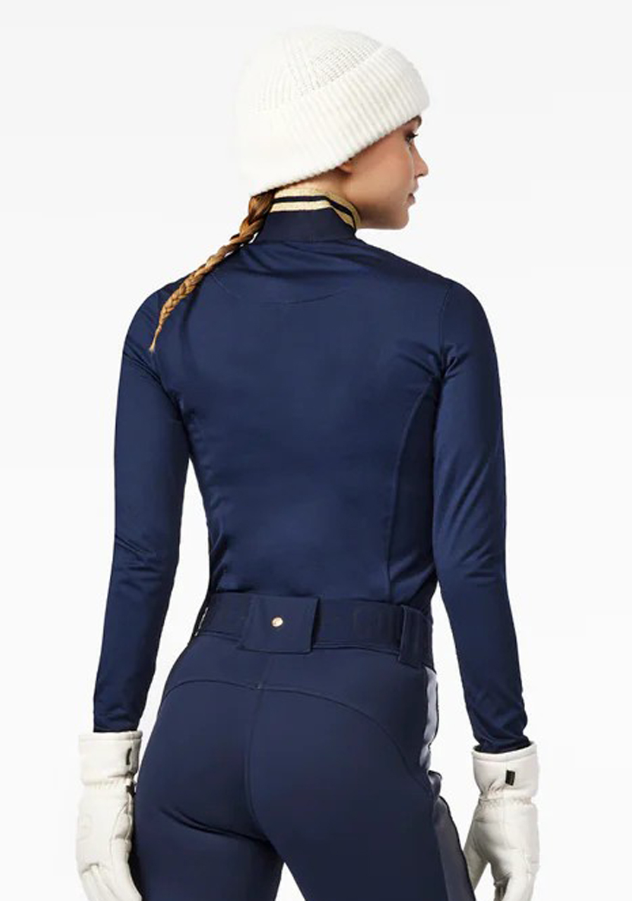 Goldbergh Diane Ski Pully v tmavě modré barvě je elegantní a funkční dámský lyžařský rolák, který dokonale kombinuje styl a výkon. Vyroben z kvalitního materiálu s vnitřní česanou úpravou, poskytuje vysoký komfort při nošení a udržuje tělo v teple i během náročných zimních aktivit. Tento model je navržen ve slim fit střihu s vysokým límcem s lurexovým zdobením a zipem u krku pro lepší regulaci teploty. Materiál je pružný, rychleschnoucí a skvěle odvádí vlhkost, což oceníte při intenzivním sportování. Tento rolák je nejen praktický, ale i stylová volba pro všechny, kteří chtějí na svahu vypadat dobře a zároveň se cítit pohodlně. Tento lyžařský rolák je ideální volbou pro aktivní ženy, které nechtějí dělat kompromisy mezi stylem a funkčností.