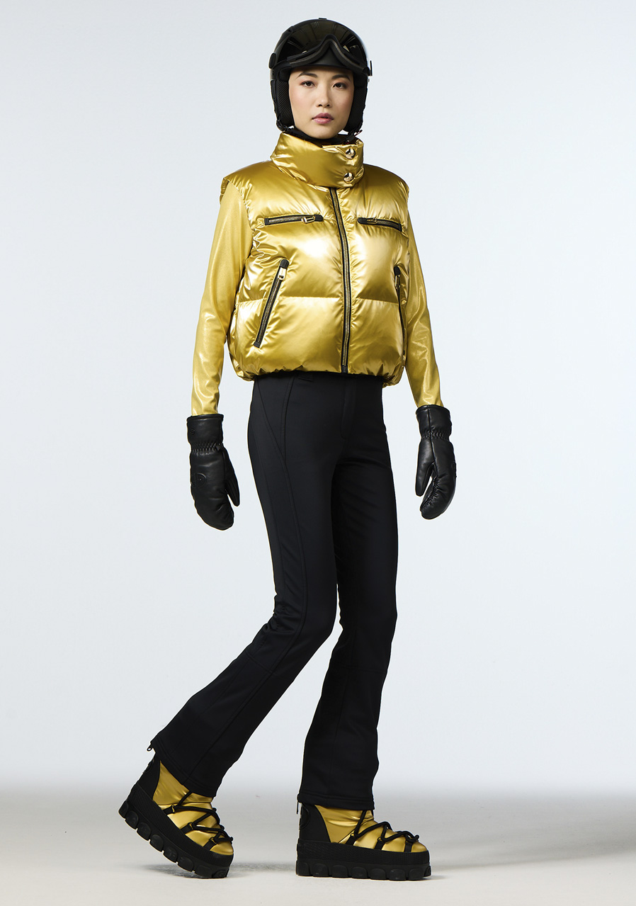 Parametry: Svrchní materiál: 52 % polyester, 48 % polyuretan Podšívka: 58 % polyester, 42 % recyklovaný polyester Výplň: 90 % prachové peří, 10 % peří (kachní) – certifikace RDS Délka zadního dílu (velikost 38): 54 cm