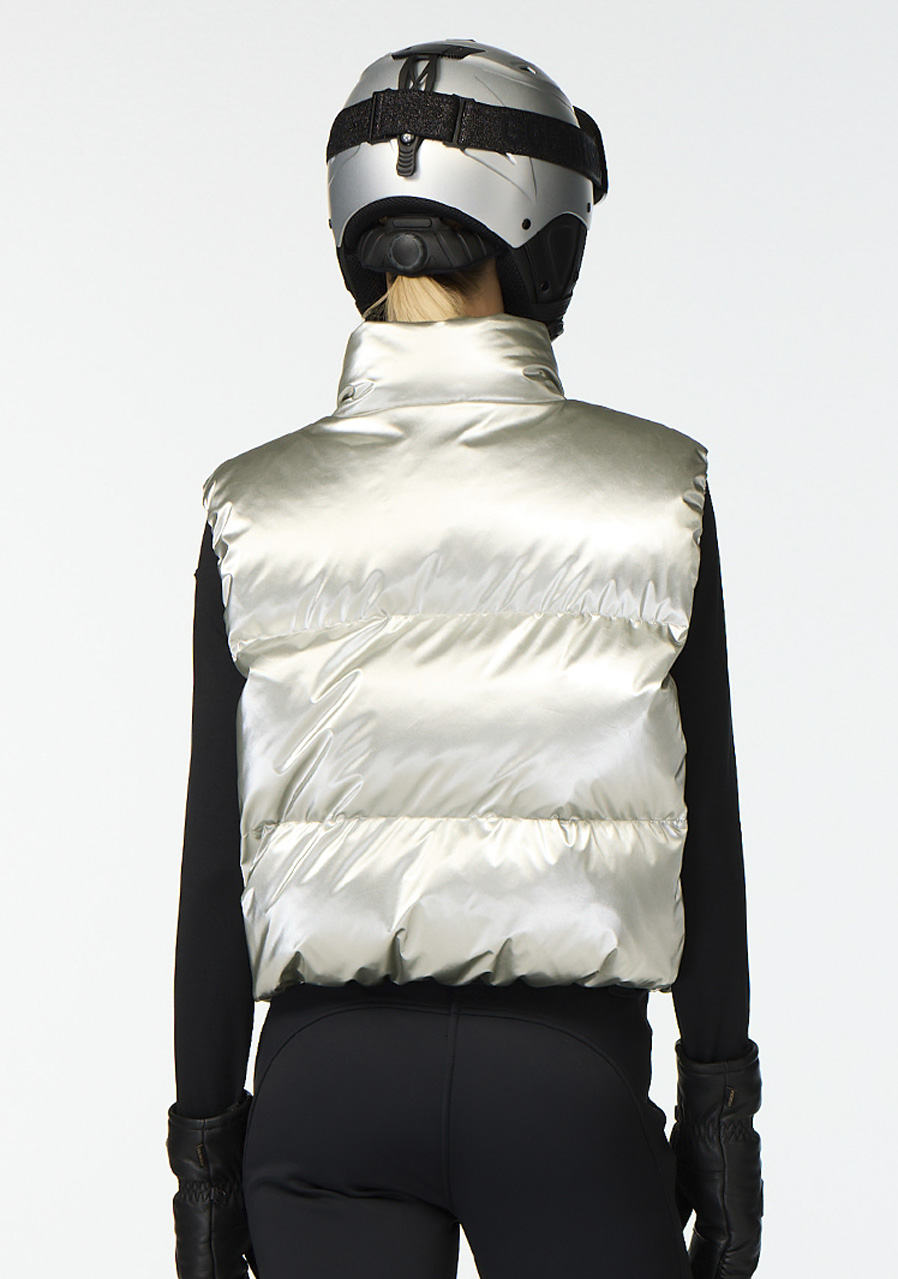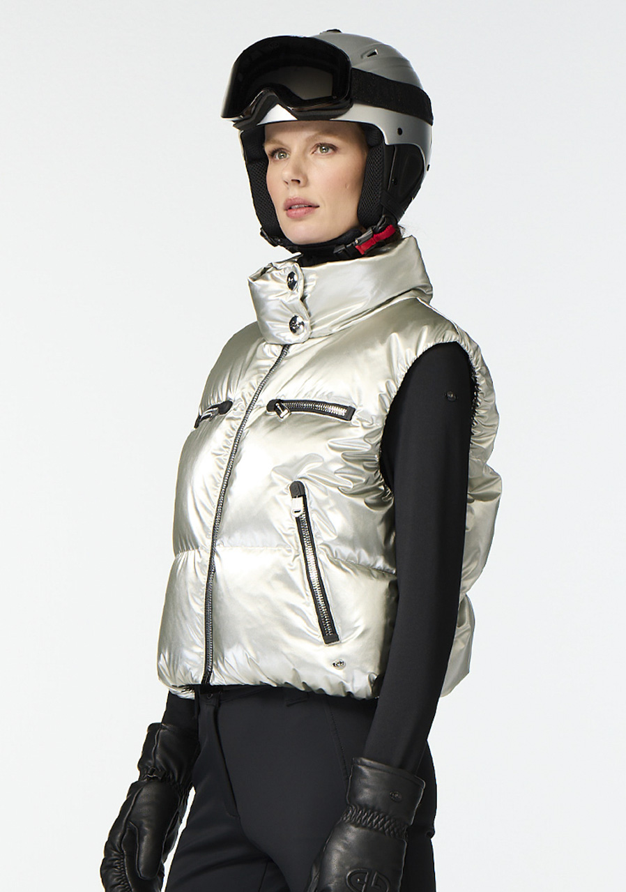 Tato dámská lyžařská vesta v pohodlném regular fit střihu je ideální pro vrstvení při zimních sportech i volnočasových aktivitách. Podšívka je částečně vyrobena z recyklovaných materiálů a opatřena úpravou proti zápachu pro delší svěžest. Péřová výplň s certifikací RDS (Responsible Down Standard) zajišťuje skvělou tepelnou izolaci při zachování nízké hmotnosti. Vesta je vybavena čtyřmi vnějšími kapsami a dvěma vnitřními kapsami pro bezpečné uložení nezbytností. Odepínací sněhový pás poskytuje dodatečnou ochranu proti pronikání sněhu. Střih odpovídá běžným velikostem, proto doporučujeme zvolit svou standardní velikost.