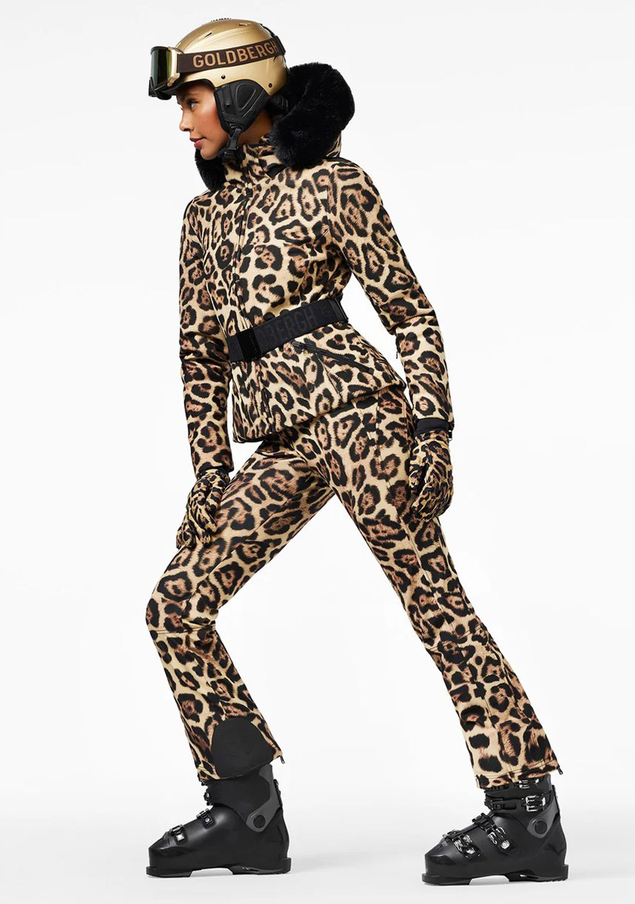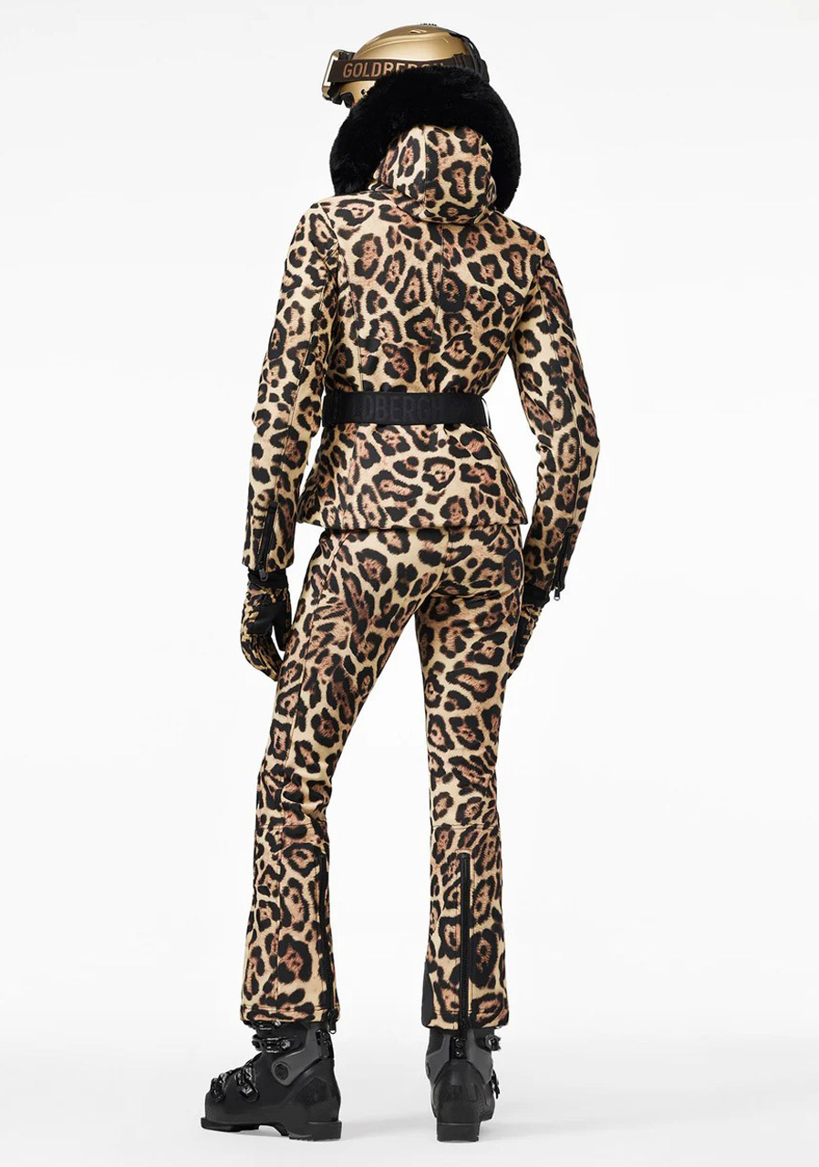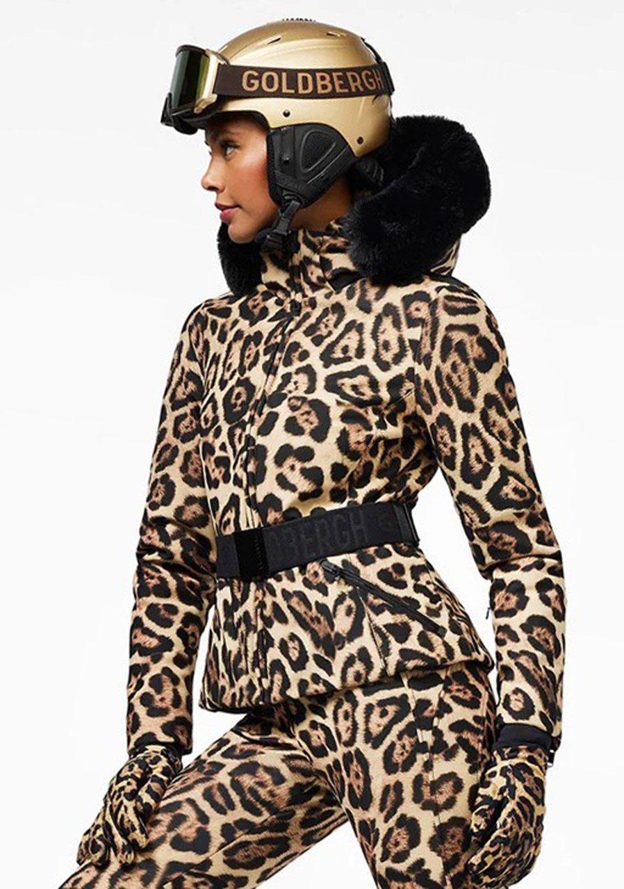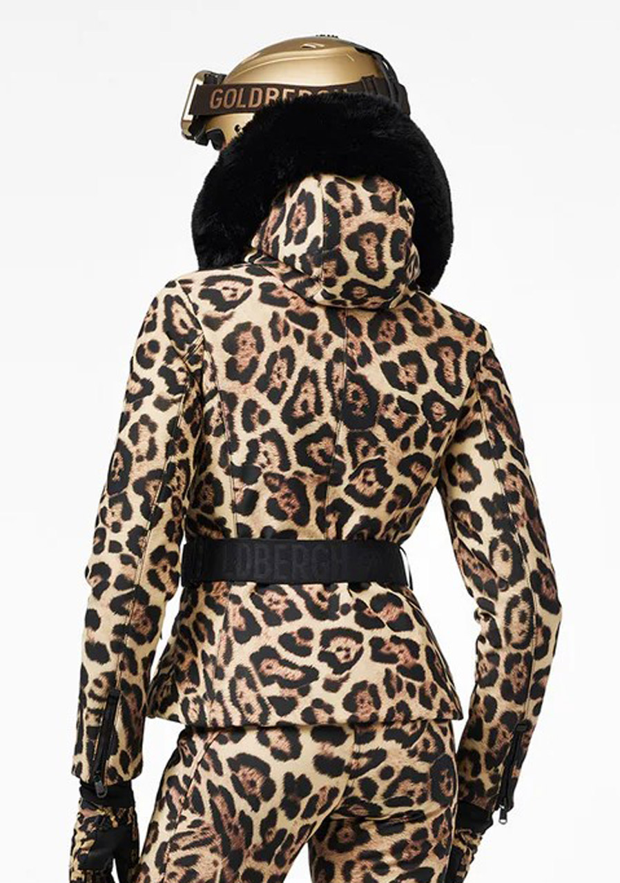 Goldbergh Felis Ski Jacket Jaguar je luxusní dámská lyžařská bunda, která spojuje styl a funkčnost. Je vyrobena z voděodolného materiálu s vysokou prodyšností, což zajišťuje pohodlí i při náročných podmínkách na sjezdovce. Bunda ve slim fit střihu se pyšní elegantním celoplošným jaguárovým potiskem a je vybavena certifikovaným RDS kachním peřím v kombinaci s polyesterovou výplní, které poskytují vynikající izolaci. Praktickými prvky jsou odepínatelná kapuce s falešnou kožešinou po obvodu, sněhový pás, manžety s otvory pro palce, zipy na rukávech, dvě vnější a dvě vnitřní kapsy a malá kapsa na skipass na rukávu. Součástí modelu jsou i dva odnímatelné opasky - černý a zlatý. Tato bunda je ideální volbou pro náročné lyžařky, které chtějí vypadat stylově a zároveň být chráněny před chladem a vlhkostí.