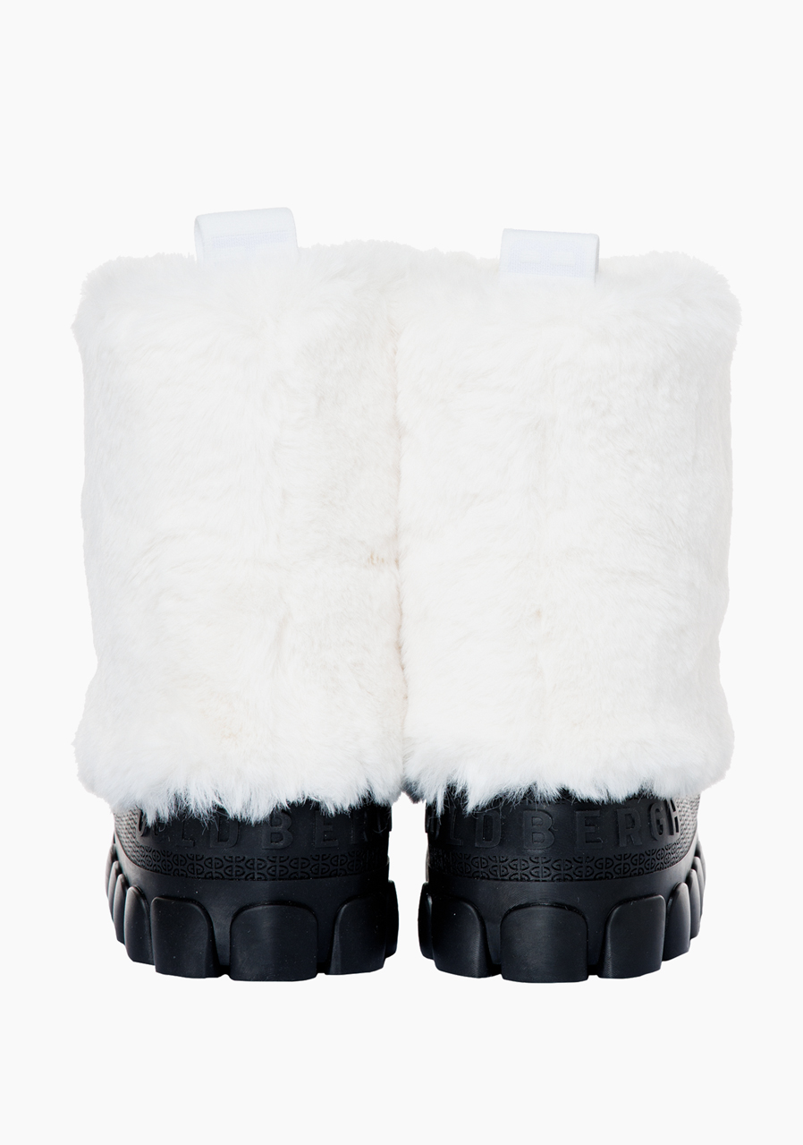 Goldbergh Fun Fur Snowboot v krémové barvě jsou luxusní zimní boty ideální pro stylové dny na horách. Tyto sněhule mají robustní podrážku a vrchní část z imitace kožešiny, která dodává botám jedinečný vzhled. Jsou vybaveny voděodolnou vnitřní konstrukcí, která zaručuje, že vaše nohy zůstanou suché i v náročných podmínkách. Na zadní části mají elastická poutka, díky kterým se boty snadno obouvají. Materiálové složení zahrnuje 100% polyester na svrchní části a podšívku z velvetového úpletu, která je měkká a příjemná na nošení. Podrážka je vyrobena z odolné gumy, což zaručuje bezpečný krok na sněhu i ledu. Fun Fur Snowboot je nejen funkční, ale i mimořádně stylový doplněk na vaši zimní dovolenou.