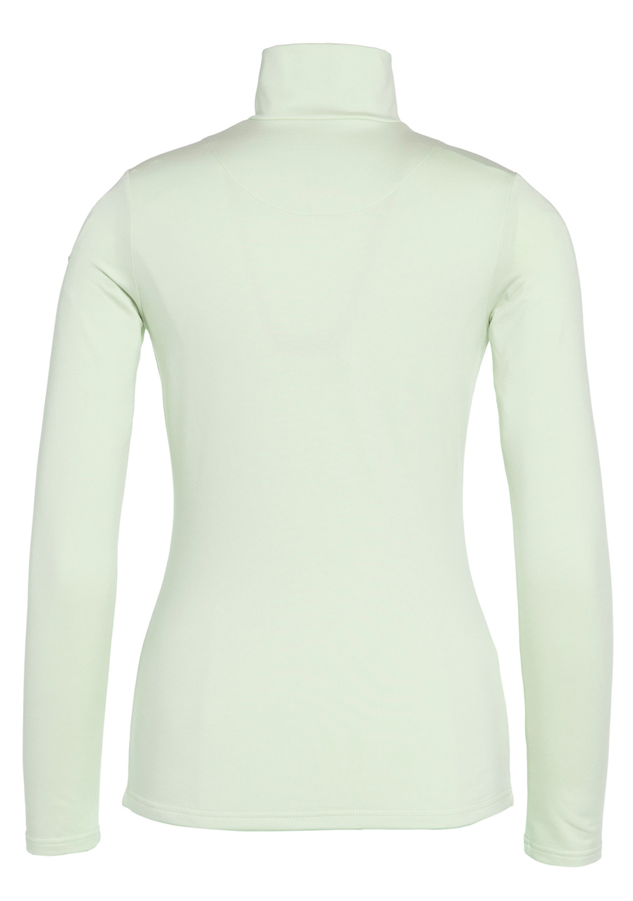 Dámský rolák Goldbergh Gemstone je díky svému střihu elegantní a dodává styl. Díky vnitřní počesané vrstvě z fleecu, vám bude teplo během celého dne a můžete ho využít jako spodní či druhou spodní vrstvu oblečení na lyže. Eleganci dodávají třipitivé kamínky Swarowski ve tvaru javorového listu na hrudi. Malé logo GB na levém rukávu dodává roláku na kompaktnosti, aníž by zbytečně na sebe upozorňovalo. Diagonální zapínání na zip na ramenou.