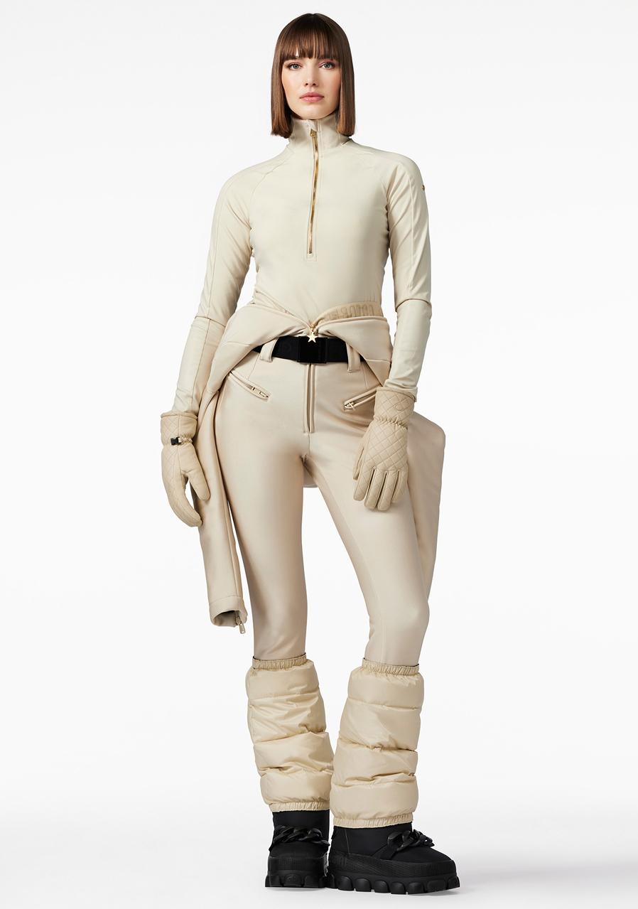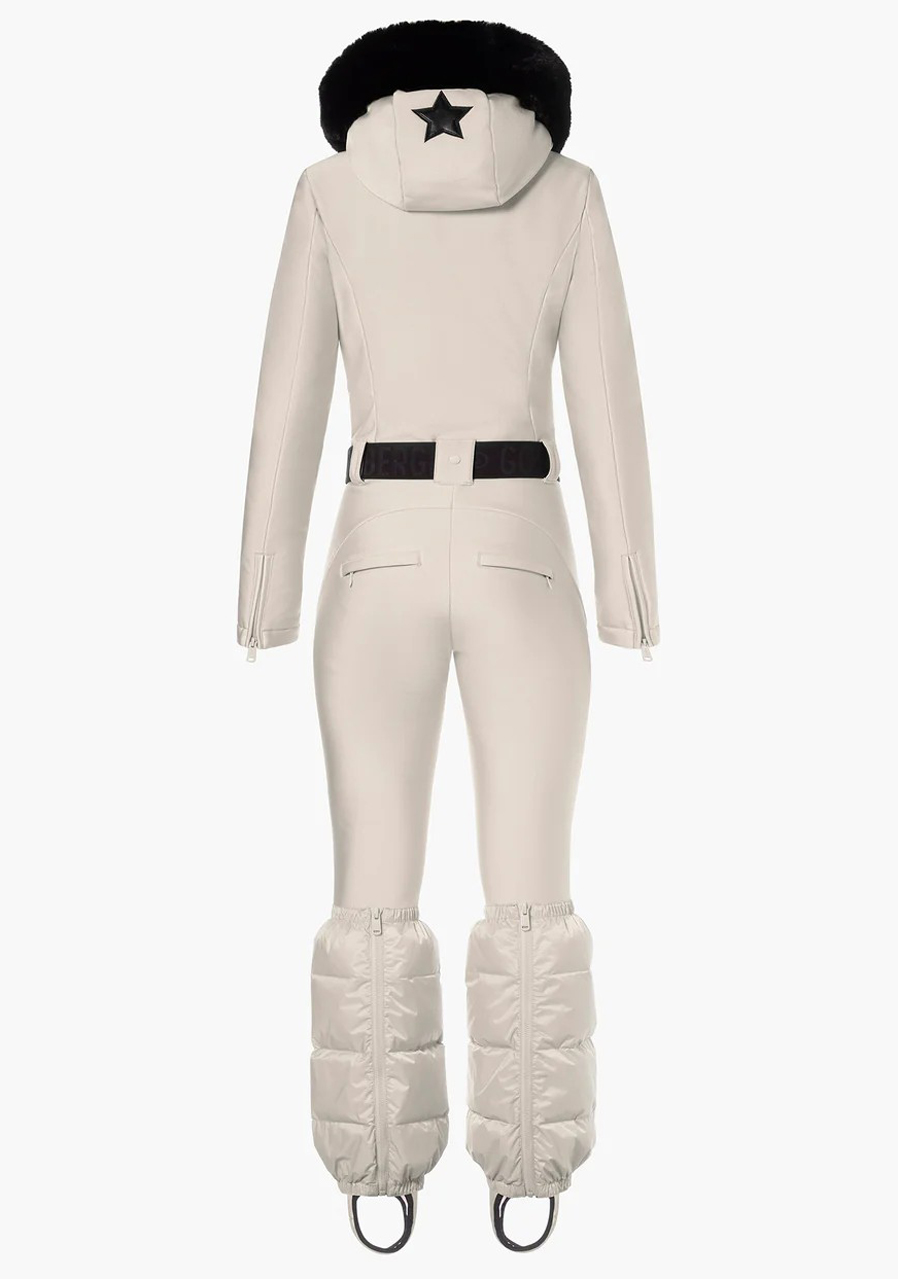 Goldbergh Glisser Faux Border Ski Suit v barvě Champagne je stylová lyžařská kombinéza, která kombinuje sofistikovaný design s vysokou funkčností. Tento oblek je ideální volbou pro ženy, které chtějí na sjezdovkách vypadat skvěle a zároveň se cítit pohodlně a chráněné. Kombinéza je vyrobena z voděodolných a prodyšných materiálů s technologií Powerstretch, které zajistí maximální pohodlí i v nepříznivém počasí, a je vybavena speciální anti-odor úpravou. Integrovaná izolace vás udrží v teple i při nízkých teplotách, takže se budete cítit komfortně po celý den na horách. Kombinéza má dostatek kapes (šest vnějších, dvě vnitřní, kapsa na skipass) na zip pro bezpečné uložení drobných věcí jako je telefon, klíče nebo skipas. Dále disponuje elastickým opaskem, zipy na rukávech, gumičkami na nohavicích pro snadnější oblékání a odnímatelnými sněhovými manžetami. Tato kombinéza ve slim fit střihu je nejen funkční, ale také mimořádně stylová, ideální pro ty, kteří ocení luxusní módní kousky i při zimních sportech. Parametry: Vnější materiál: 80% polyamid, 20% elastan; umělá kožešina - 100% polyester Vnitřní materiál: první - 86% polyamid, 14% elastan; druhý - 100% polyamid Výplň: první - 90/10 kachní peří (90% prachové peří, 10% peří); druhá - 100% polyester Primaloft výplň Vodní sloupec: 10 000 mm Prodyšnost: 5 000 g/m²/24h