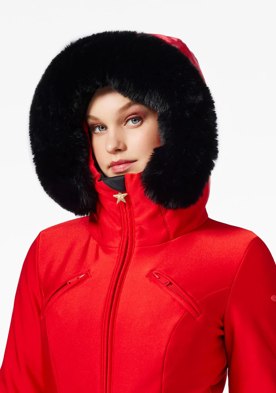 Goldbergh Glisser Faux Border Ski Suit v červené barvě je stylová lyžařská kombinéza, která kombinuje sofistikovaný design s vysokou funkčností. Tento oblek je ideální volbou pro ženy, které chtějí na sjezdovkách vypadat skvěle a zároveň se cítit pohodlně a chráněné. Kombinéza je vyrobena z voděodolných a prodyšných materiálů s technologií Powerstretch, které zajistí maximální pohodlí i v nepříznivém počasí, a je vybavena speciální anti-odor úpravou. Integrovaná izolace vás udrží v teple i při nízkých teplotách, takže se budete cítit komfortně po celý den na horách. Kombinéza má dostatek kapes (šest vnějších, dvě vnitřní, kapsa na skipass) na zip pro bezpečné uložení drobných věcí jako je telefon, klíče nebo skipas. Dále disponuje elastickým opaskem, zipy na rukávech, gumičkami na nohavicích pro snadnější oblékání a odnímatelnými sněhovými manžetami. Tato kombinéza ve slim fit střihu je nejen funkční, ale také mimořádně stylová, ideální pro ty, kteří ocení luxusní módní kousky i při zimních sportech. Parametry: Vnější materiál: 80% polyamid, 20% elastan; umělá kožešina - 100% polyester Vnitřní materiál: první - 86% polyamid, 14% elastan; druhý - 100% polyamid Výplň: první - 90/10 kachní peří (90% prachové peří, 10% peří); druhá - 100% polyester Primaloft výplň Vodní sloupec: 10 000 mm Prodyšnost: 5 000 g/m²/24h